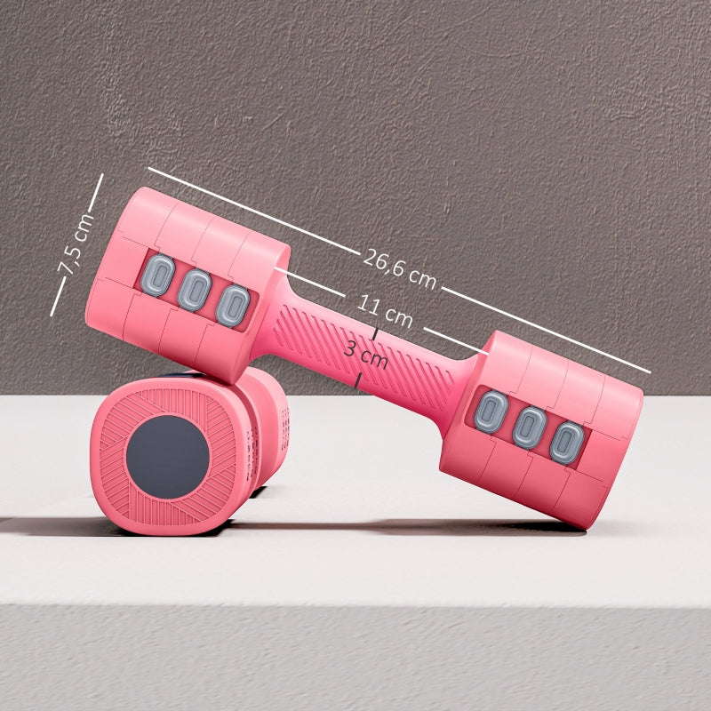 This 4-in-1 adjustable dumbbell set is perfect for progressive strength gains and varied home workouts. Each dumbbell includes six 0.25 kg weight plates, allowing adjustments to 1 kg, 1.5 kg, 2 kg, and 2.5 kg per dumbbell (a pair totals 2 kg, 3 kg, 4 kg, or 5 kg). Quickly and easily adjust the weight with the user-friendly selection dial, switching between resistance levels in seconds for a smooth and uninterrupted workout.