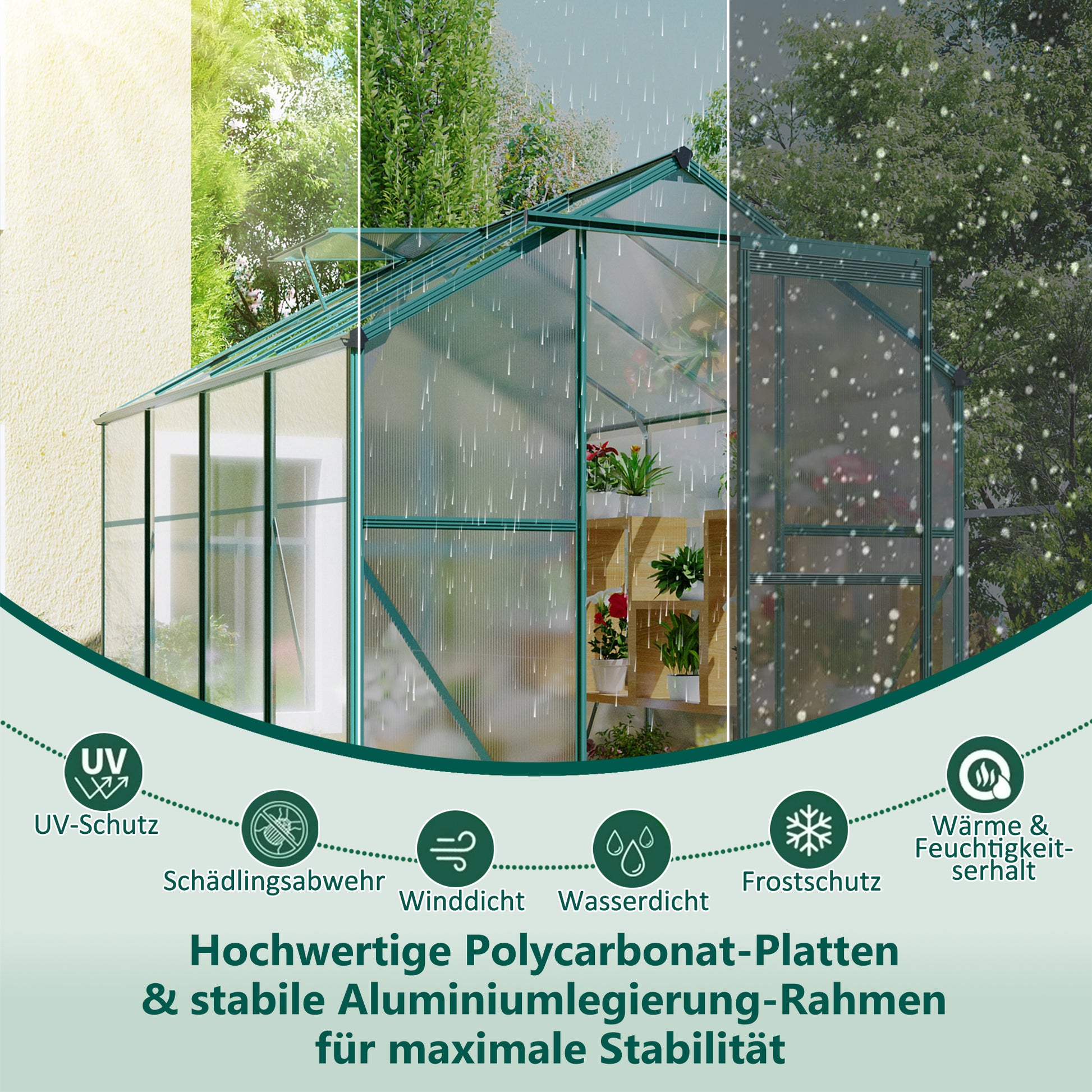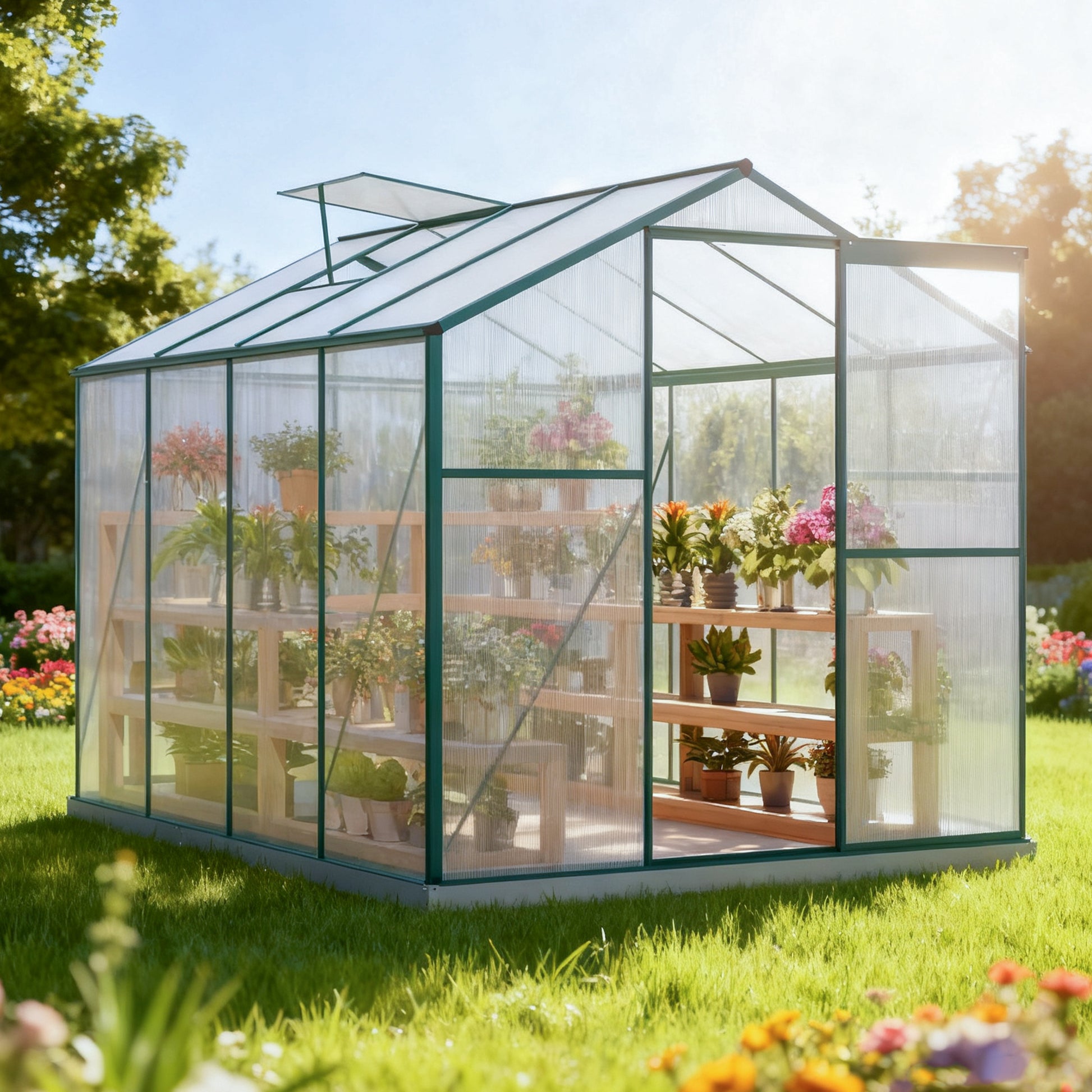 Greenhouse Material: Aluminum profiles, 4mm polycarbonate (PC) twin-wall sheets.