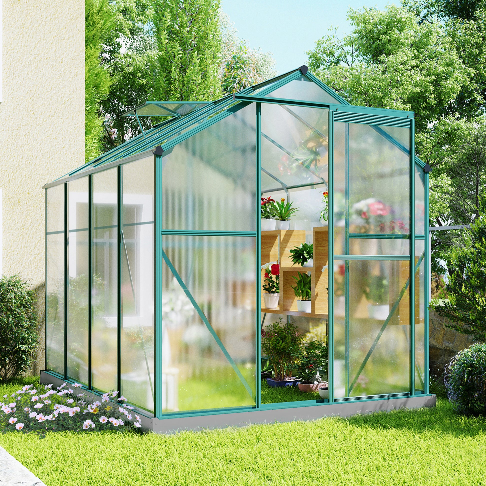 Aluminum Greenhouse 4.75 m² 190 × 253 cm with Foundation, 1 Roof Window & Sliding Door, Aluminum