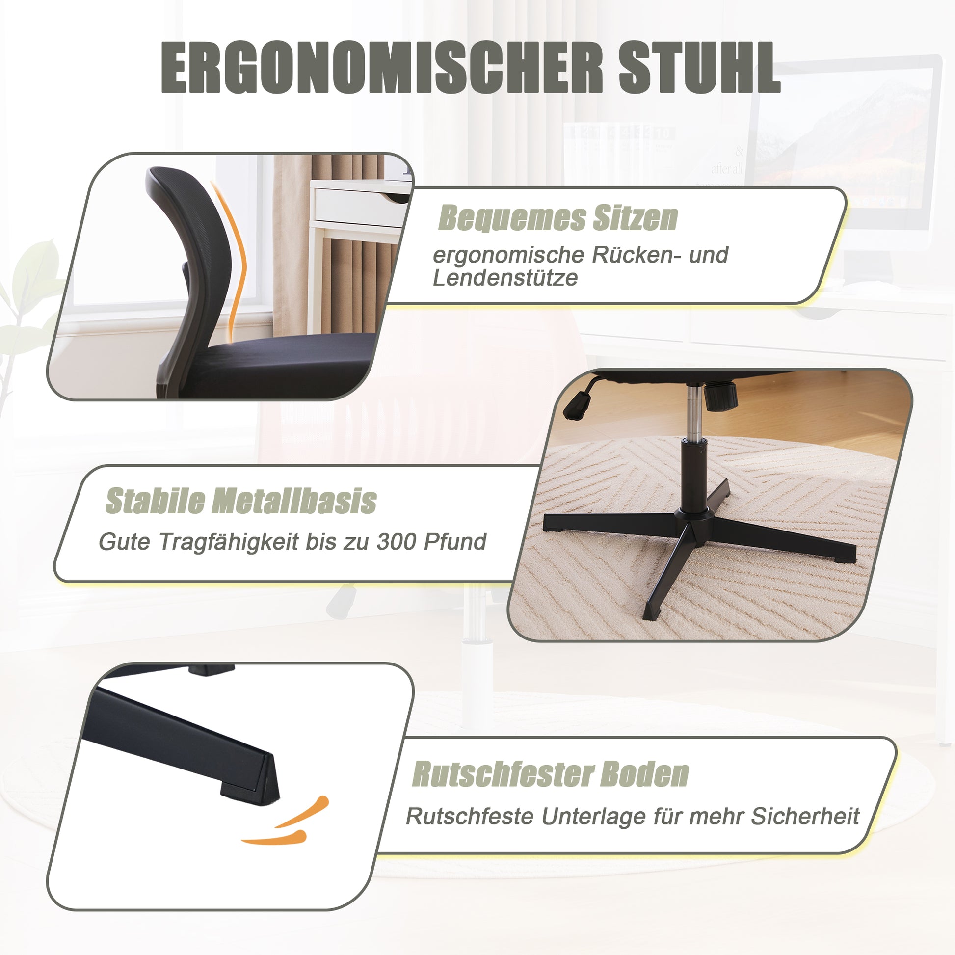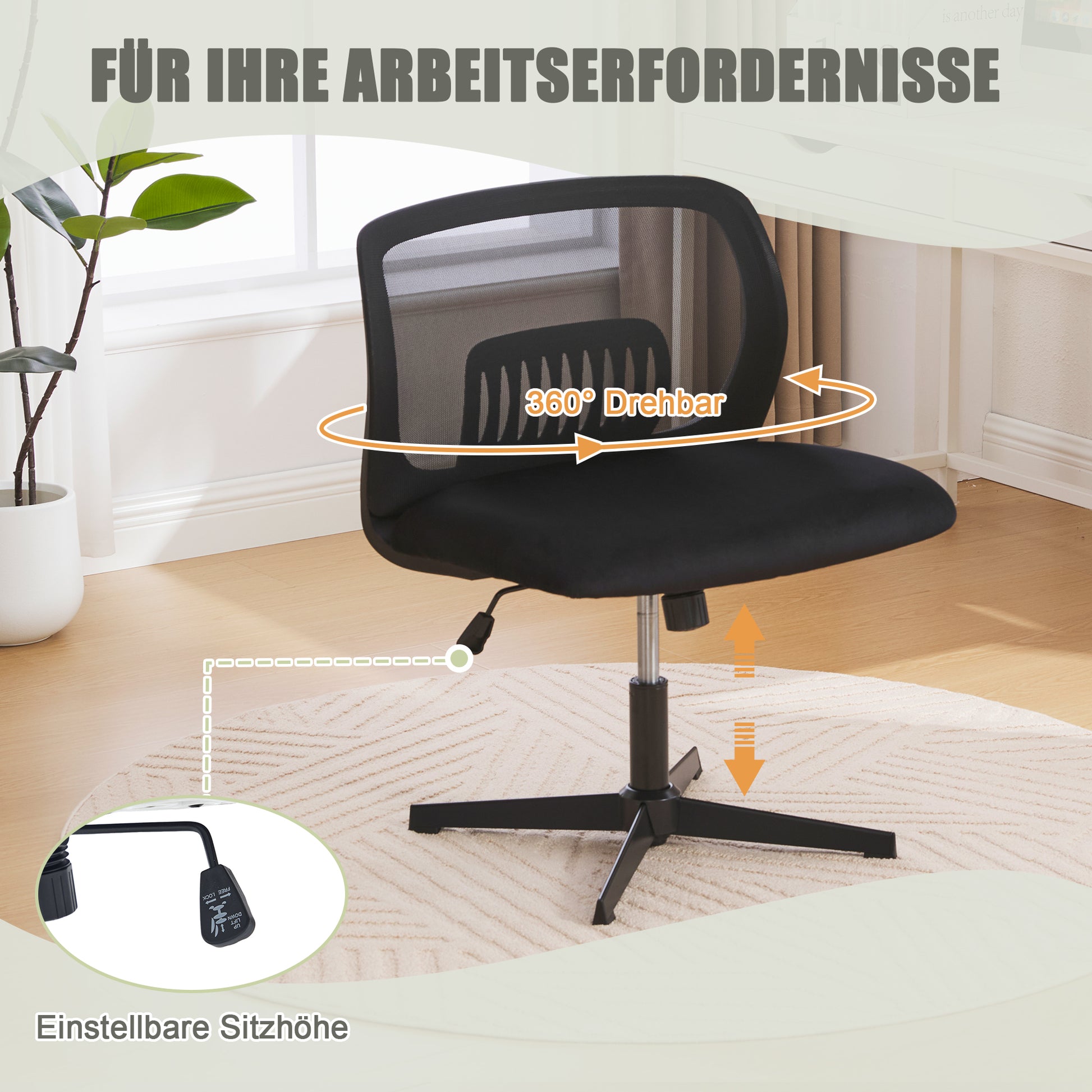 Armless Office Chair, Reading & Living Room Chair, Rocking, Height Adjustable, 360° Rotatable