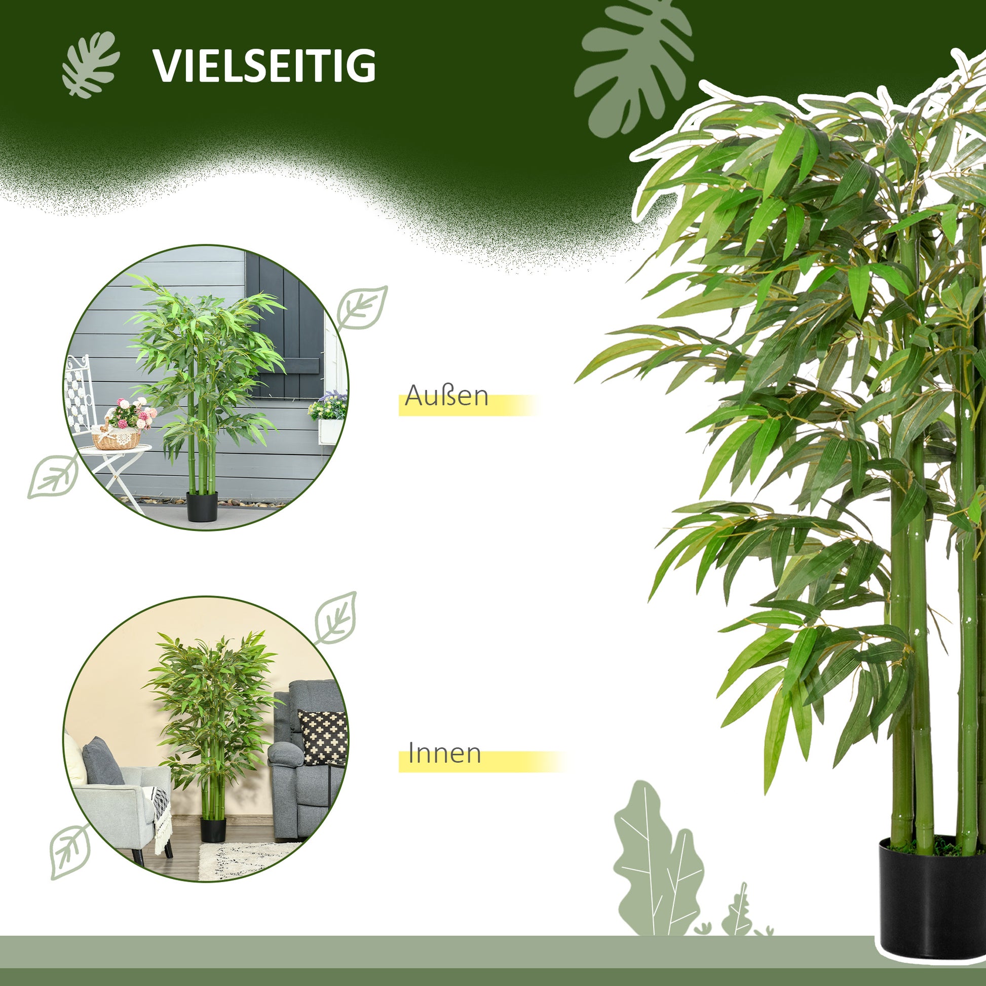 Convincing Quality: Featuring bamboo branches and lush leaves made of premium plastic, these potted artificial plants are particularly durable. They feature lifelike colors, a natural texture, and a surface covered with artificial moss.