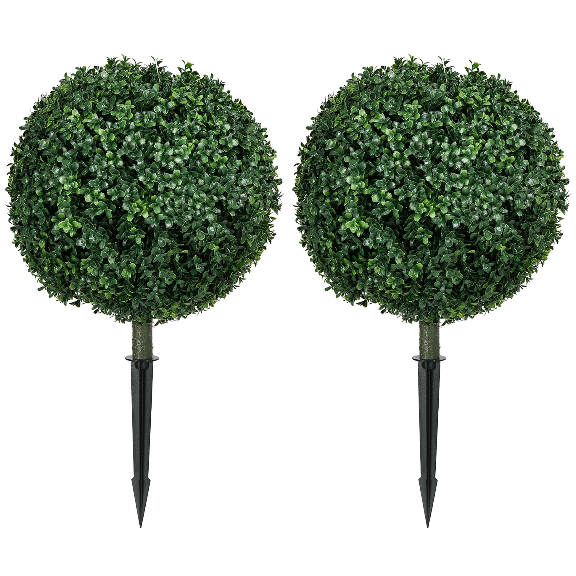 Elegant Tree Look: This set of two round boxwood trees brings a deceptively realistic natural atmosphere to your home or outdoor space, ideal for any room.