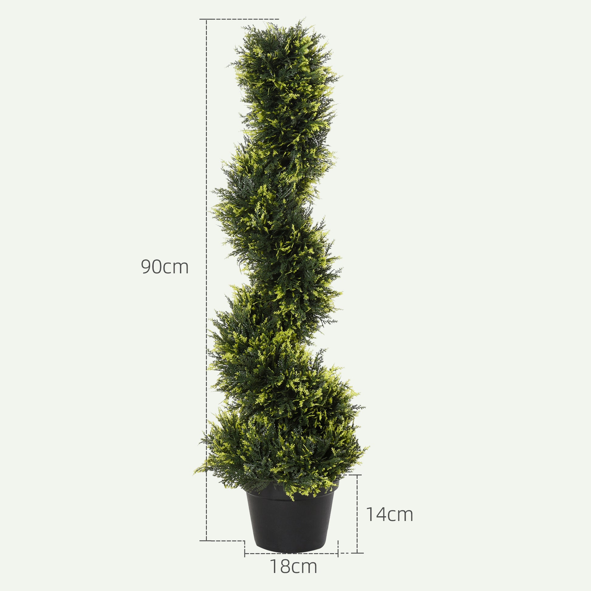 Artificial Cedar Trees Set of 2, Large 90cm Spiral Plant for Decoration, Plastic