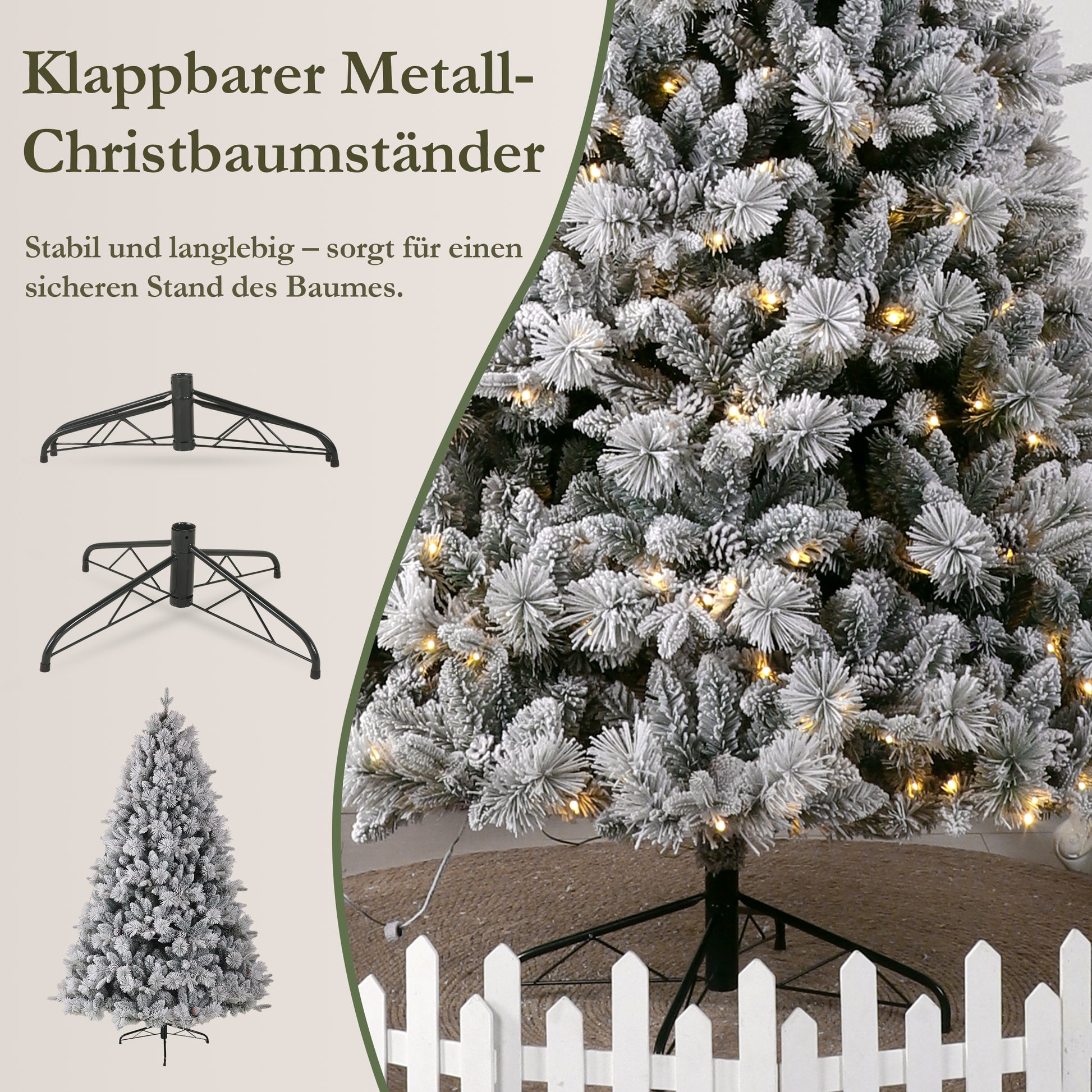 Our artificial Christmas tree is made of high-quality PE and PVC and includes a sturdy metal stand, making it the perfect choice for a festively decorated home. The realistic snow effect gives the tree an incredibly lifelike look, transforming any room into a magical winter wonderland.