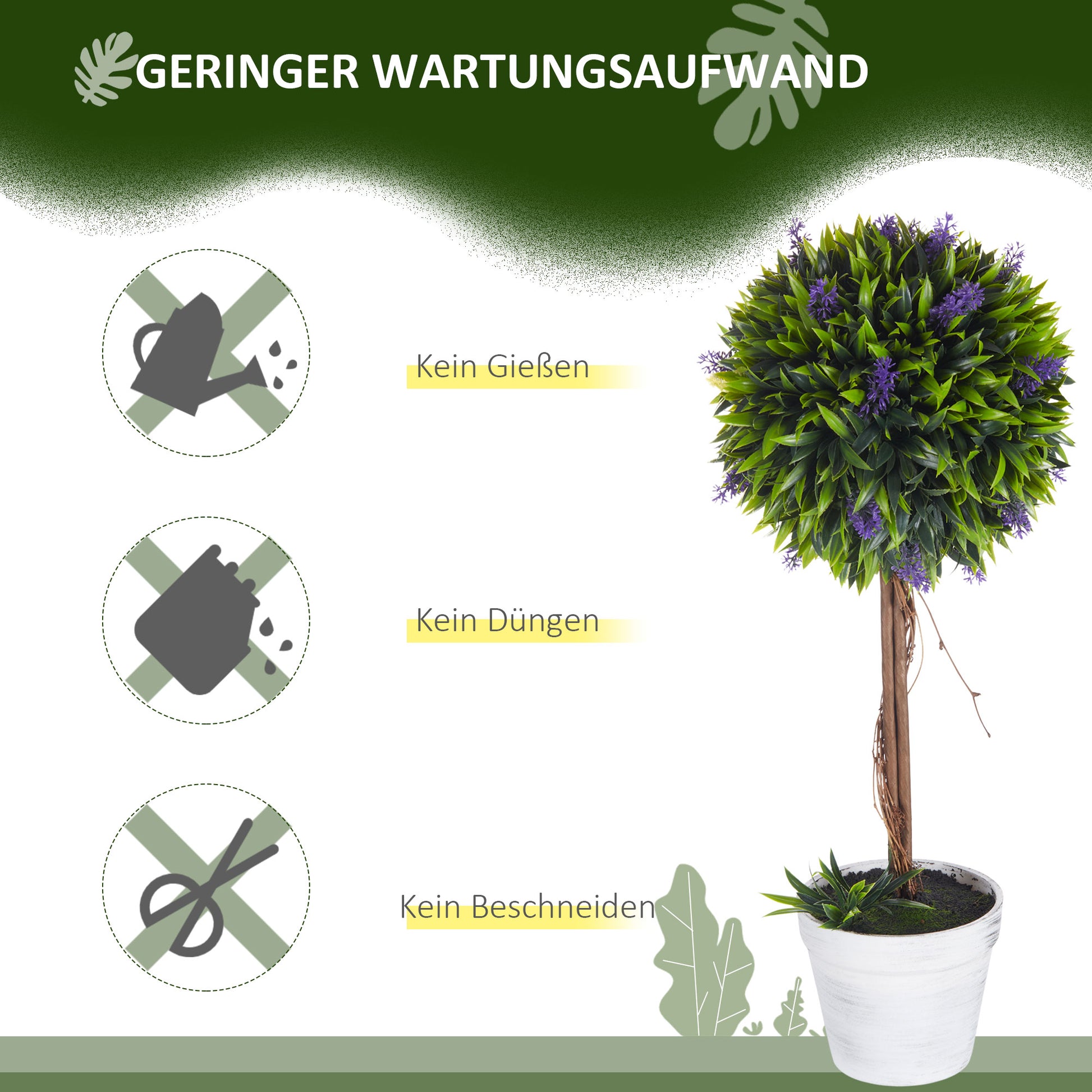 High-Quality Craftsmanship: These artificial trees are made of durable plastic, featuring 450 leaves and 25 lavender blossoms, all designed with impressively realistic color and texture—virtually indistinguishable from real plants.