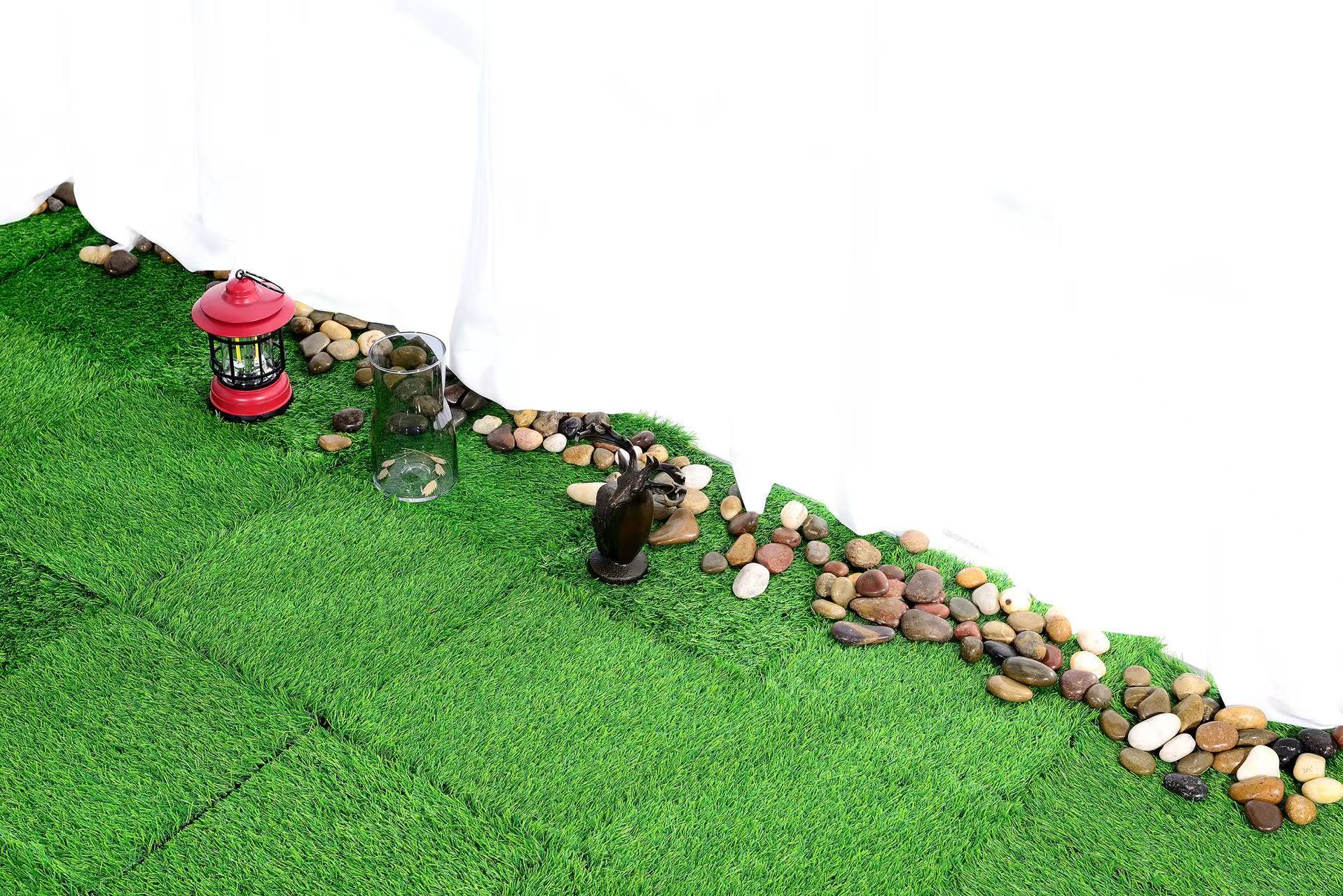 Fake grass tiles for patio with smart interlocking system allows for a quick 3-minute installation. Simply click the tiles together using the snap-lock mechanism. The round joint design reduces the risk of breakage when connecting the tiles. The artificial grass squares can be easily assembled and disassembled, saving you time and effort.