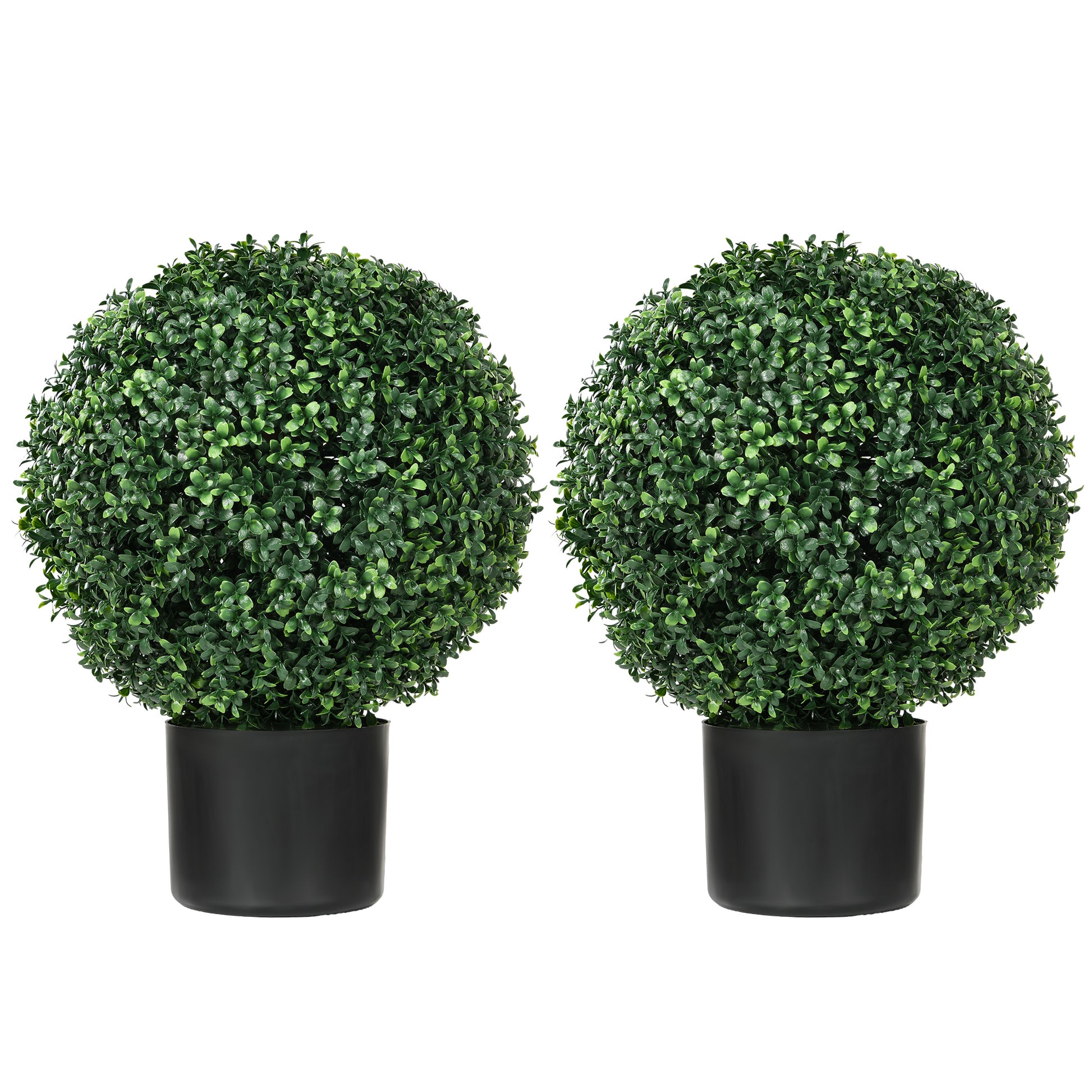 Double Greenery: This set includes two spherical boxwood artificial trees, ideal for bringing symmetrical beauty to any outdoor or indoor space without the hassle of maintenance.