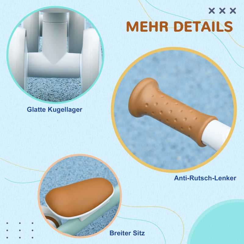 Balance Bike with Adjustable Seat and Whisper Wheels for 1-3 Years, Green and White
