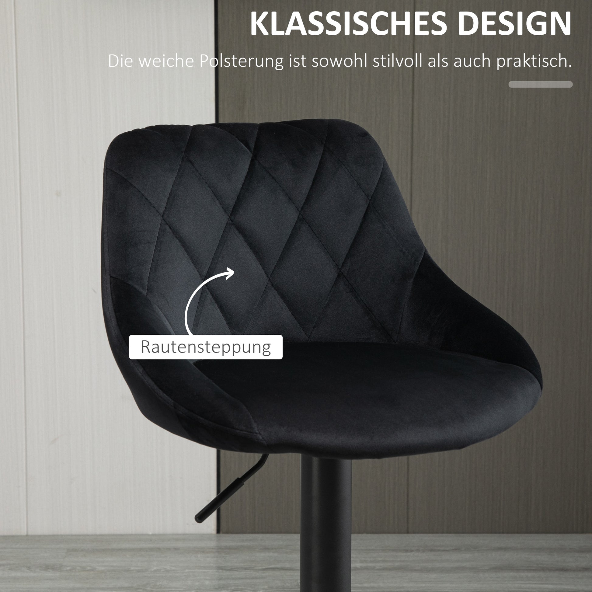 Bar Stool Set of 2, Height Adjustable with Footrest and Backrest, Velvet and Metal, Black