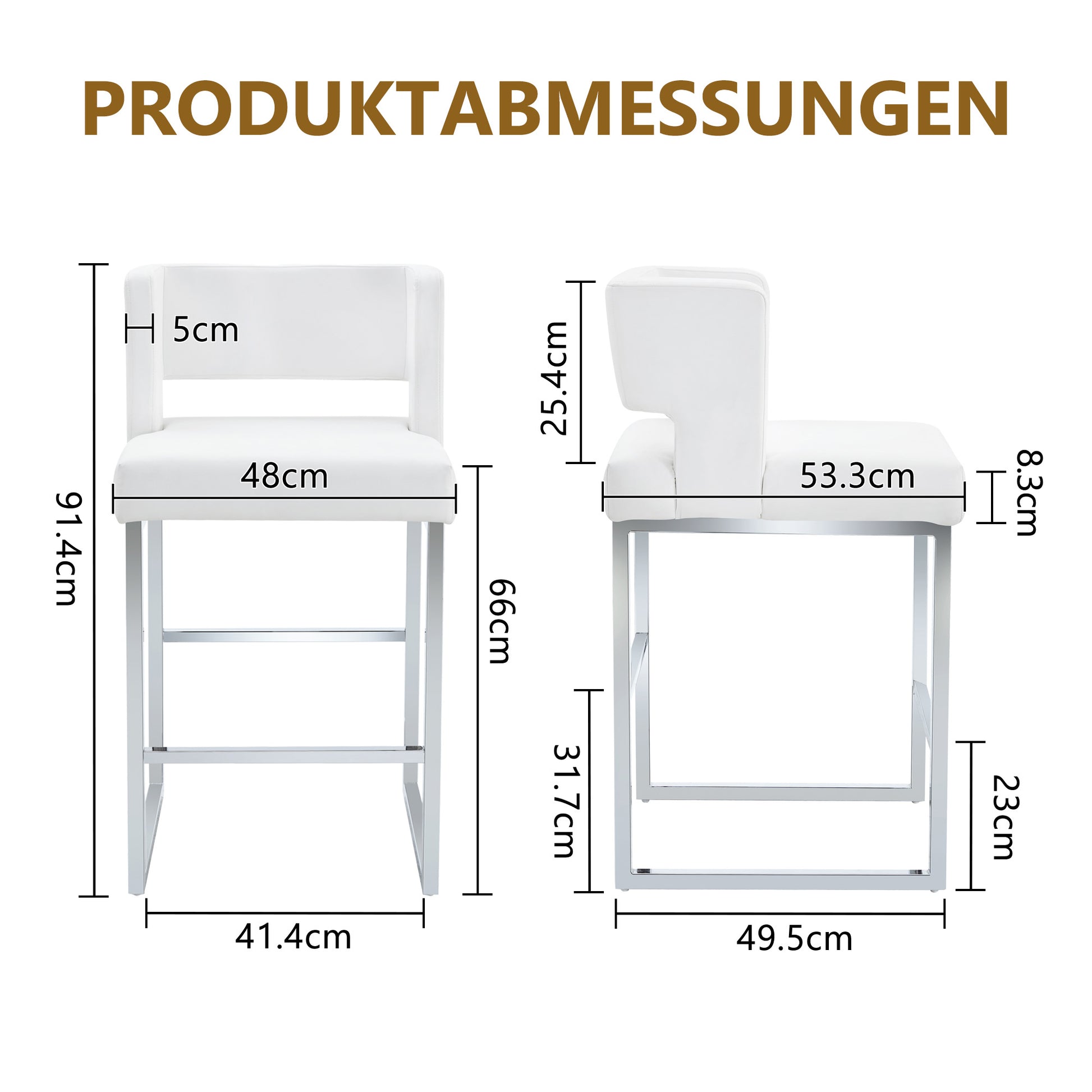 Bar Stools (2-Pack) Nordic Style Square Design, Silver Metal Legs