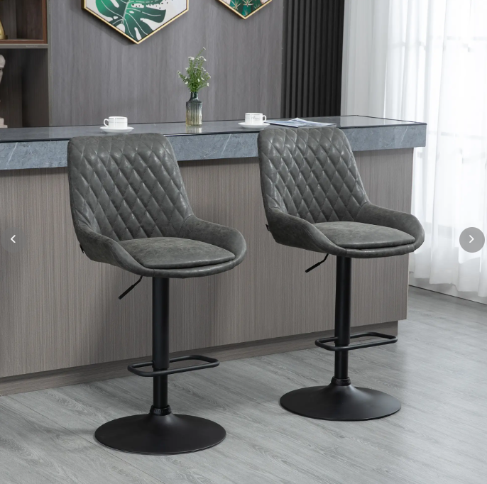 Bar Stools, Height-Adjustable with Backrest, Faux Leather Dark Grey