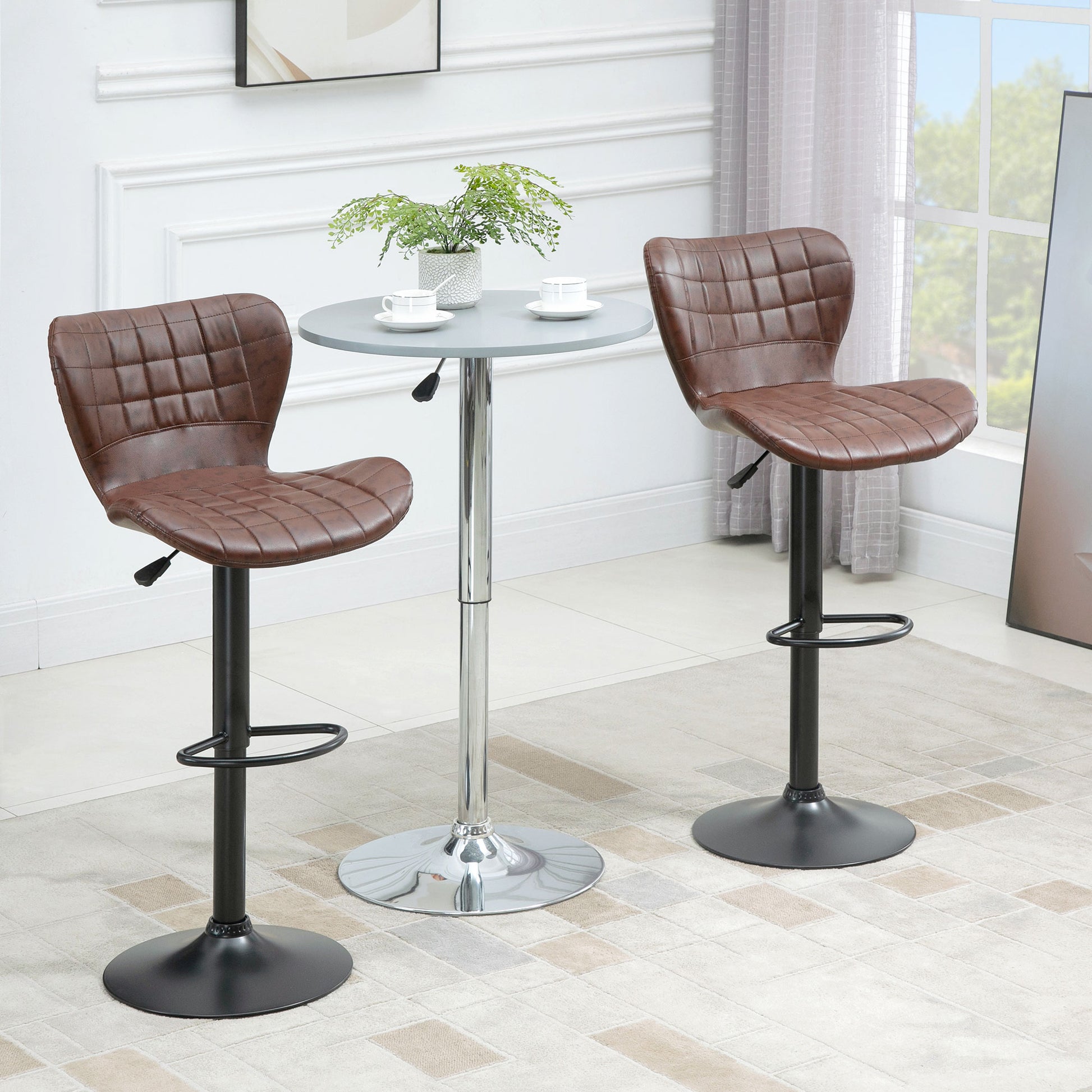 Bar Stools Set of 2, Adjustable Height Swivel Bar Chairs, PU Leather Brown