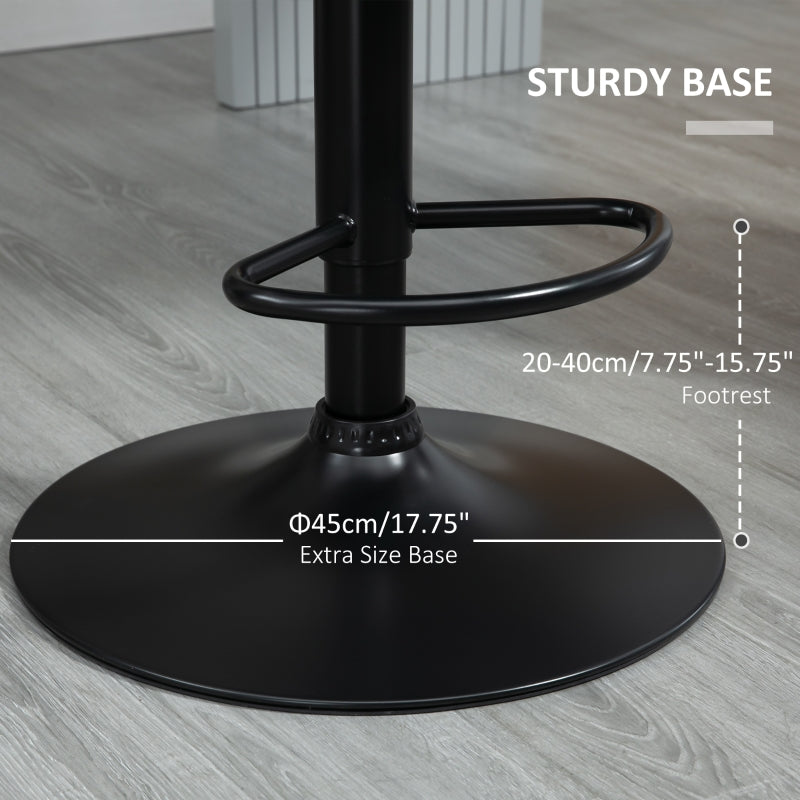 Metal bases support you as you sit, with a large round base to keep each breakfast bar stool balanced. Includes a bottom foot and leg rest.