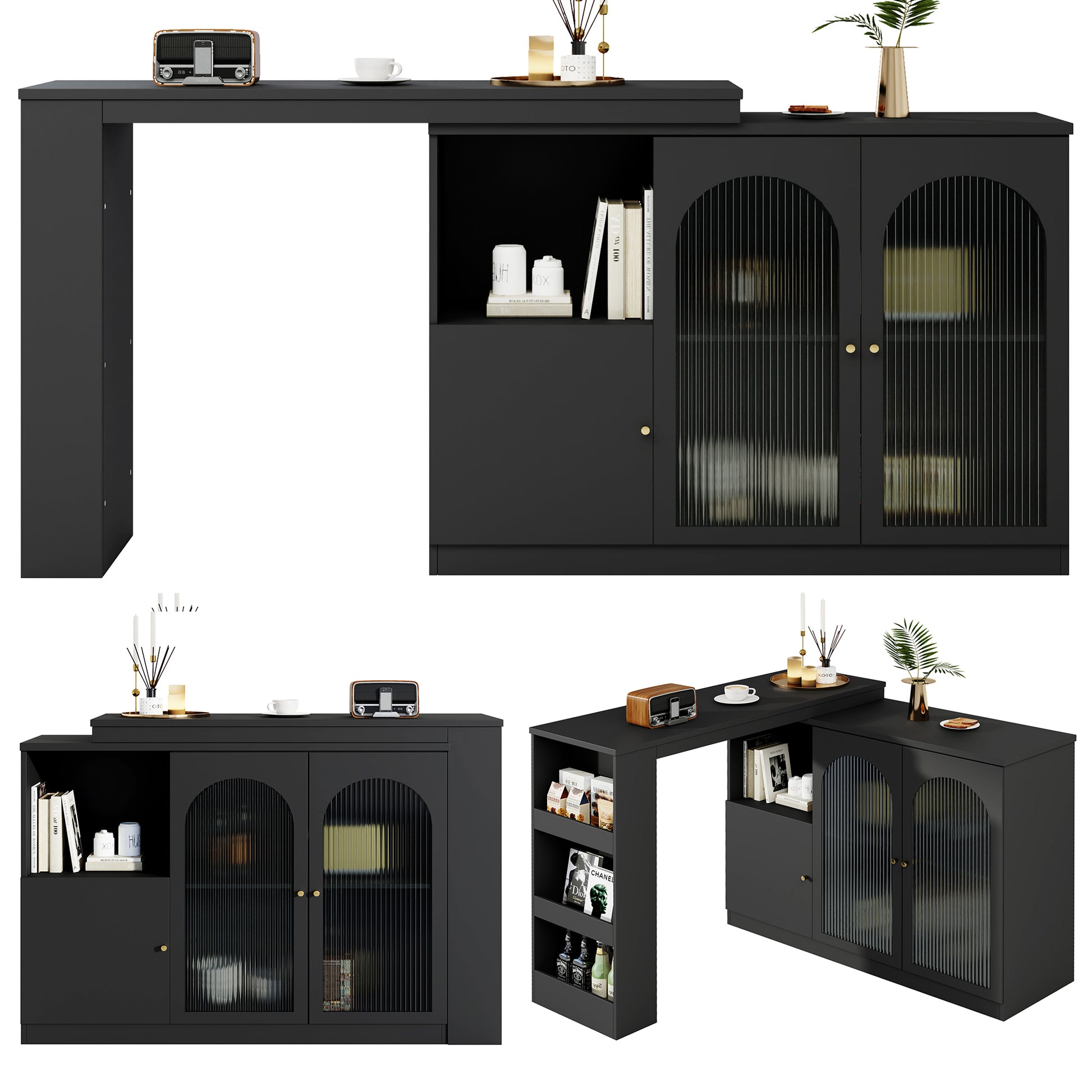 The unique 360° rotatable design of this dining bar cabinet allows it to flexibly adjust its shape to suit your needs, perfectly adapting to different living scenarios and adding more possibilities to your life. In the kitchen, it can be used as a food preparation table for storing cooking utensils and spices, making cooking more convenient. In the restaurant, it can serve as a wine cabinet or tea cabinet, displaying fine wines and glasses, thus creating a relaxing dining atmosphere. In the living room, it can also be used as a bar counter or display case to showcase your beloved collectibles and books, or even become an interactive center for family gatherings. This dining and bar cabinet not only meets the functional needs of various occasions, but also makes space utilization more flexible, offering modern families the perfect combination of versatile functions and elegant decoration.
