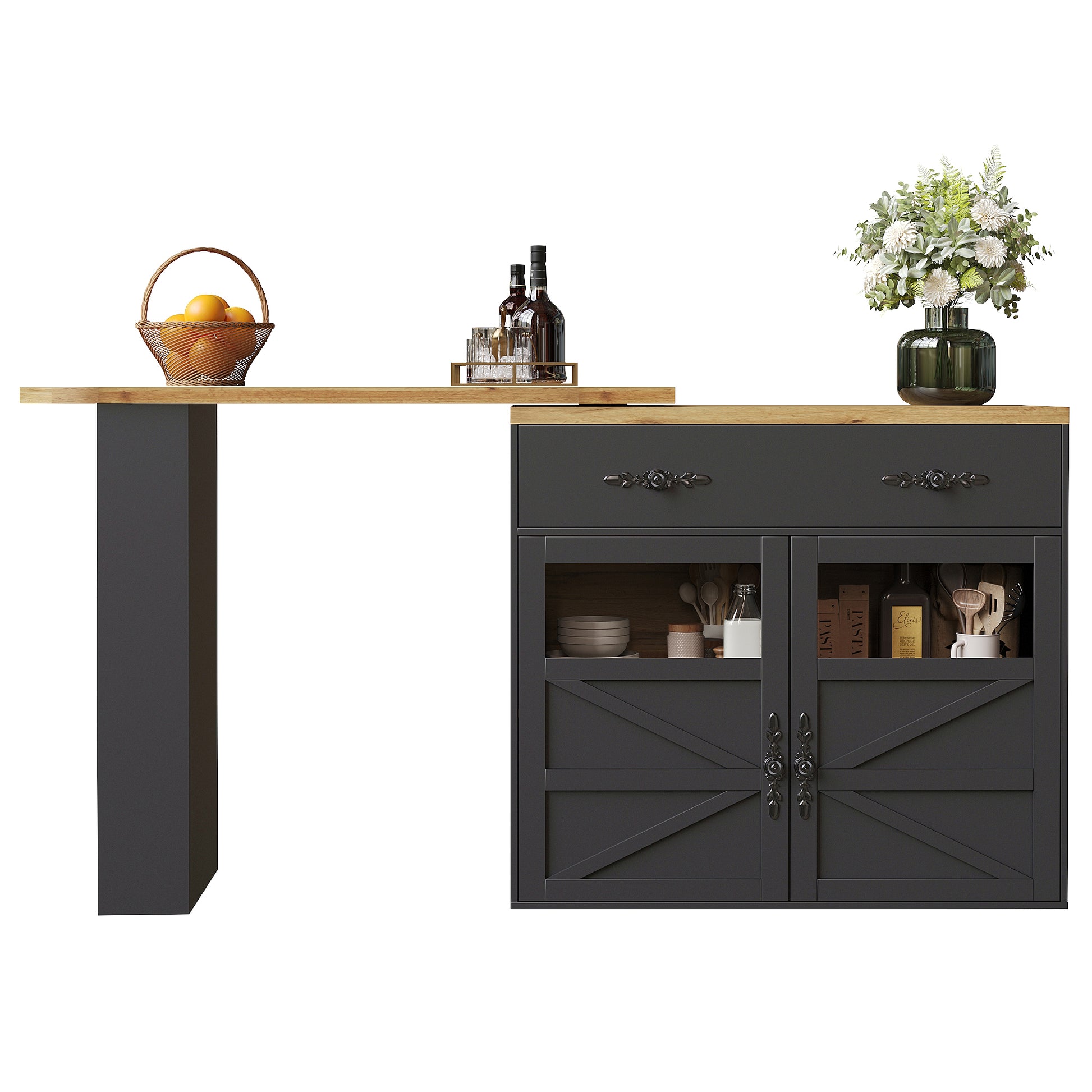 Bar Table Extendable 360° Rotating Storage Sideboard - Black