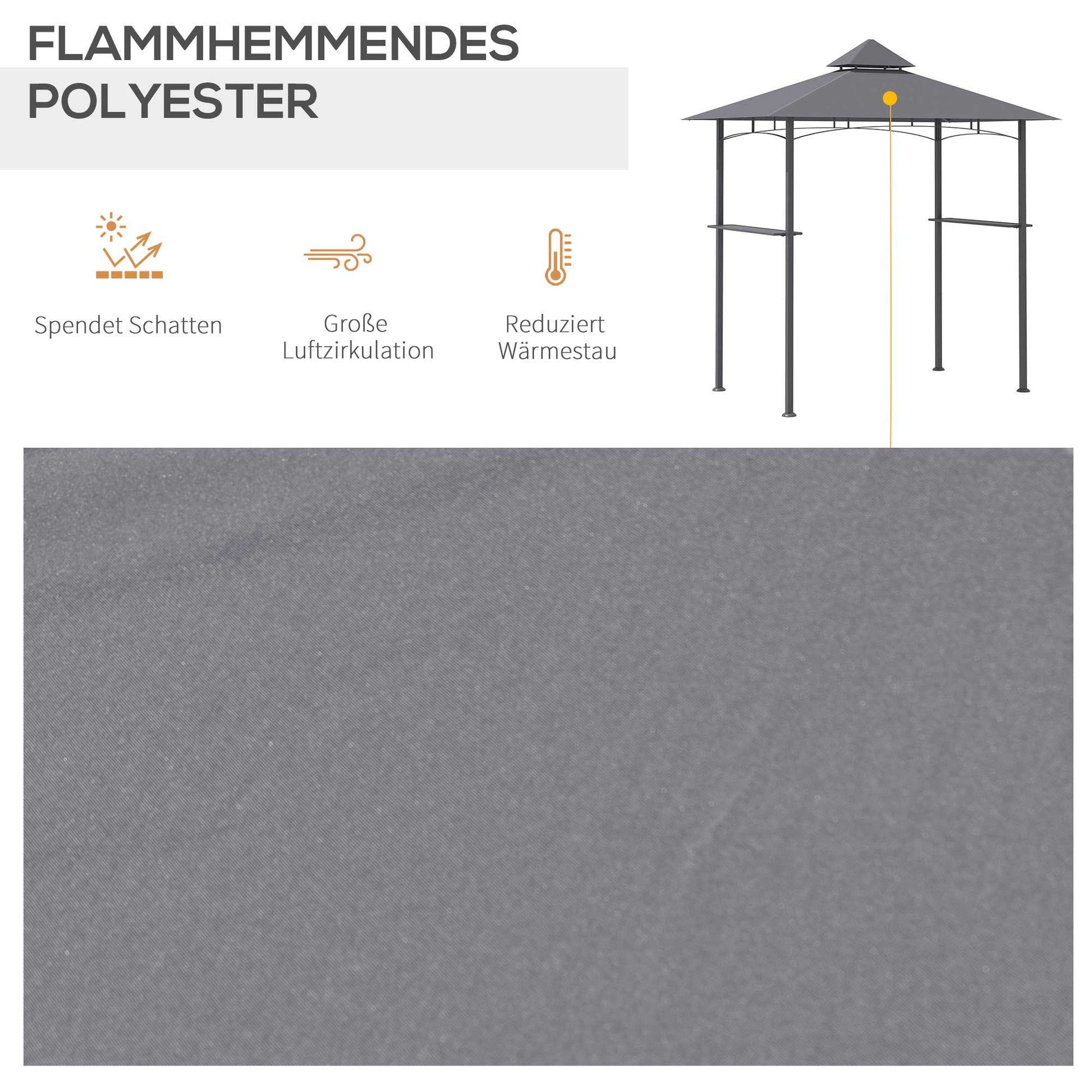 Barbecue Pavilion, Garden Tent Flame-Retardant Double Roof, Grey