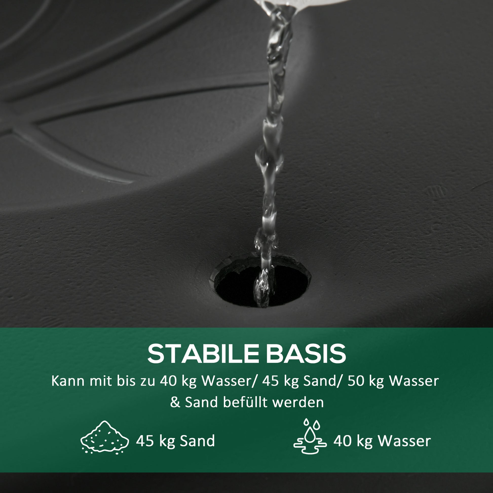 Stable base: The plastic base can be easily filled with sand or water to ensure it stands firmly on the ground. The base weighs 40 kg when filled with water, 45 kg with sand, or 50 kg when filled with sand and water. A practical, round recess in the base provides space for the basketball and prevents it from rolling away.