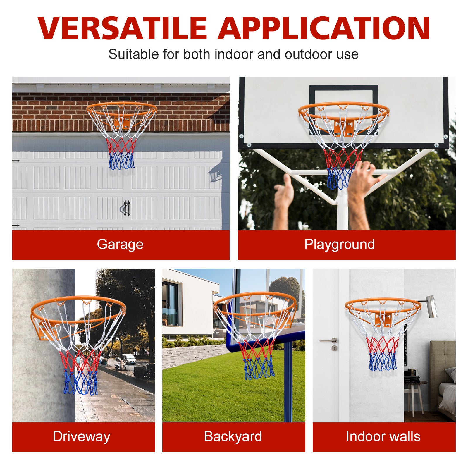 This heavy duty breakaway basketball rim is highly suitable for beginners' training and basketball enthusiasts' games, whether in driveways, backyards, or even indoors. You can install it on any stable vertical surface where you want to play basketball, including walls, doors, or other suitable locations.