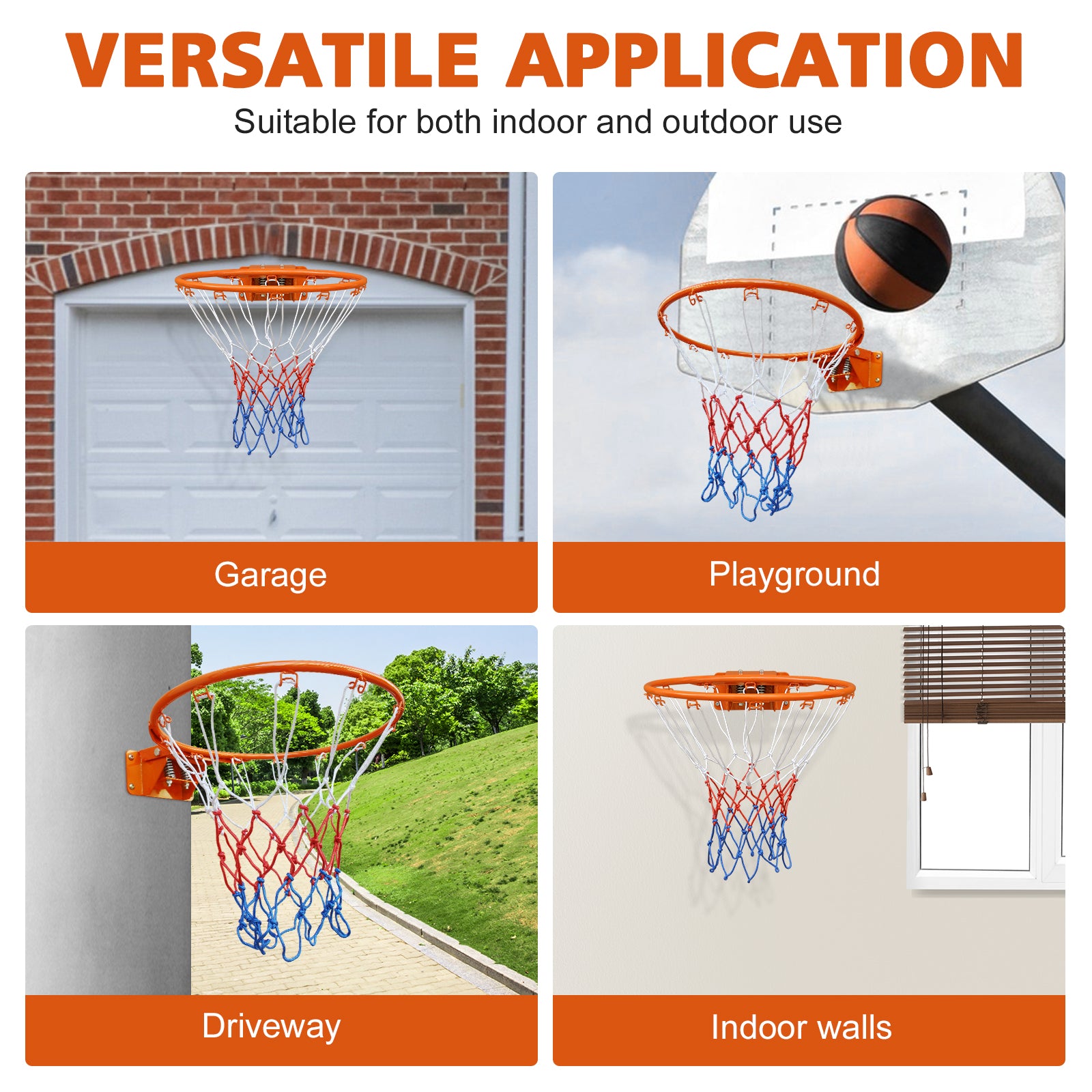 Universal Size: This basketball rim is a 45.72 cm standard rim, making it an excellent replacement for any worn or damaged basketball hoop. This design typically conforms to standard basketball game rules and dimensions, making it suitable for various games and recreational activities, including both indoor and outdoor venues, and meeting different usage needs.