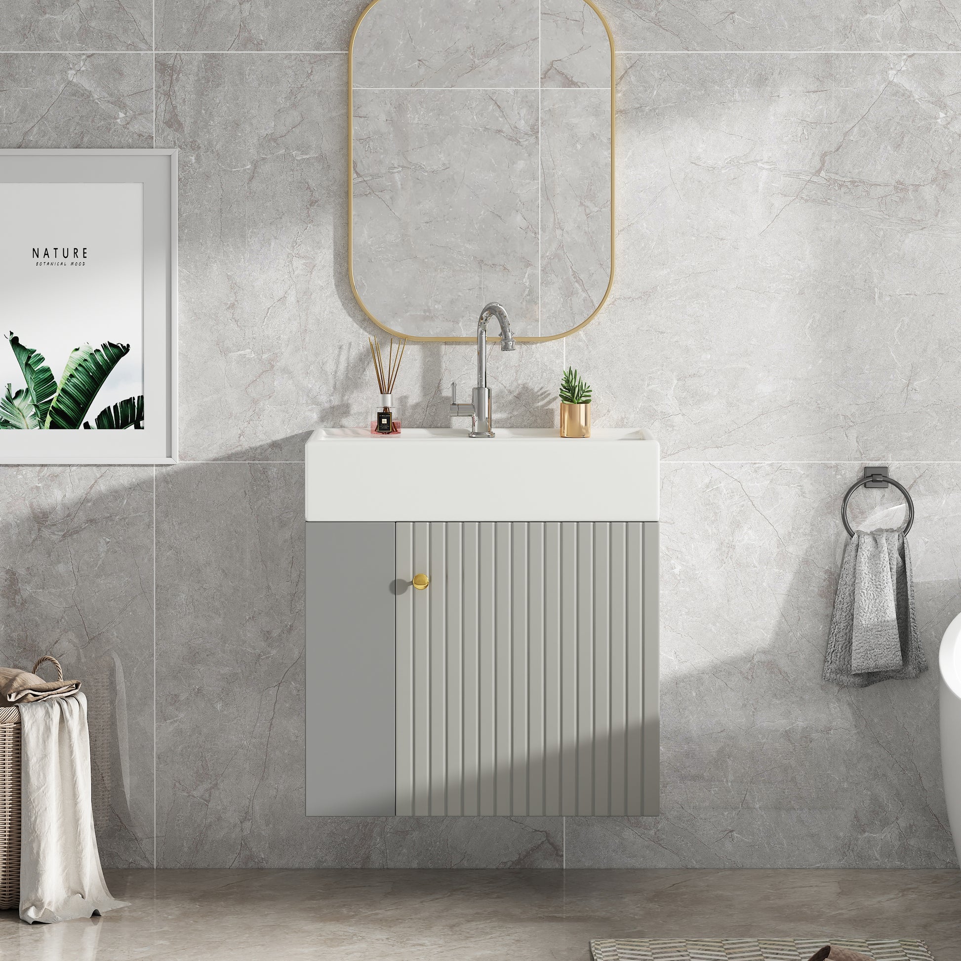 Bathroom Furniture Washbasin with Vanity Unit 55cm, Hanging, Light Grey