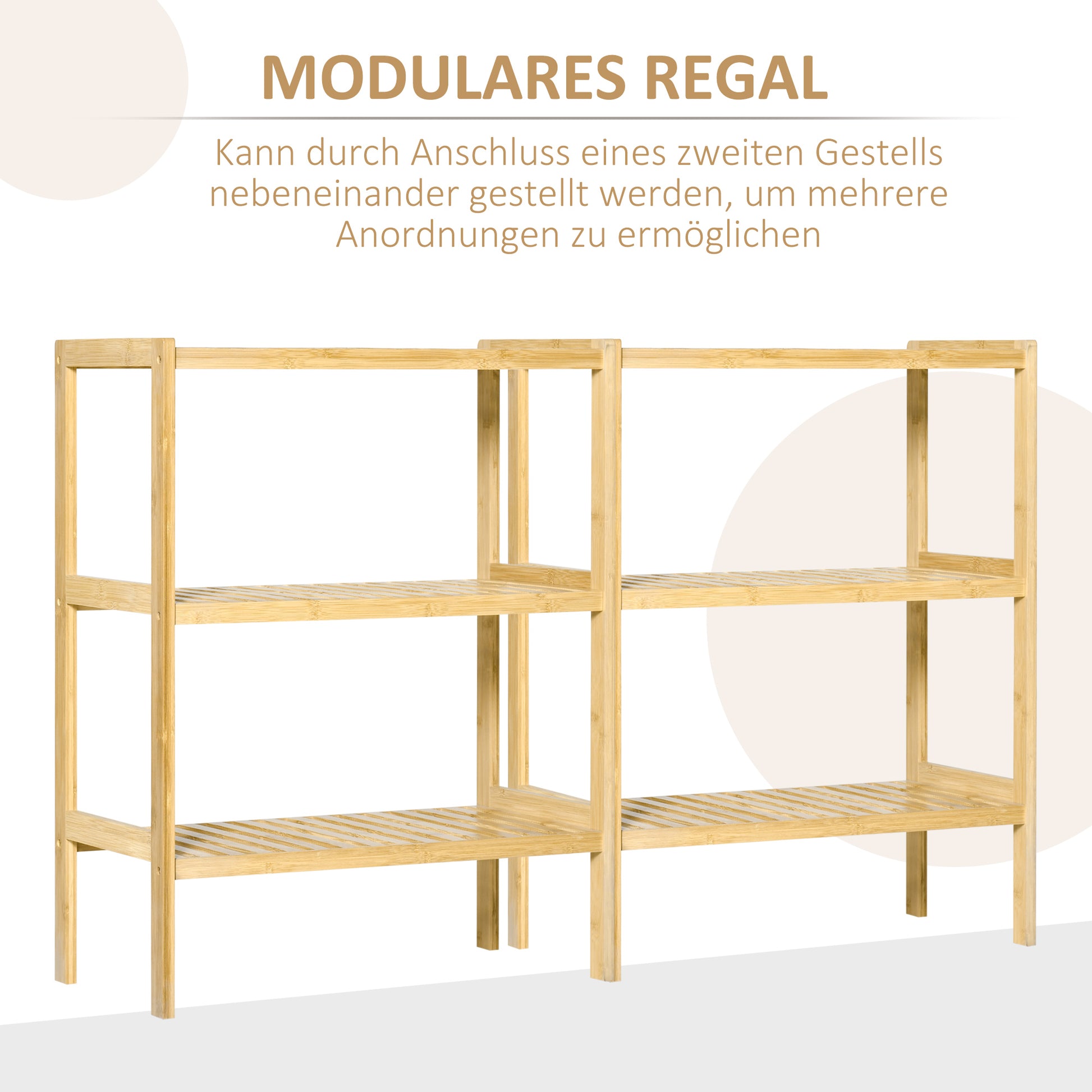 Bathroom Shelf, 3 Levels Standing Kitchen, Natural Bamboo
