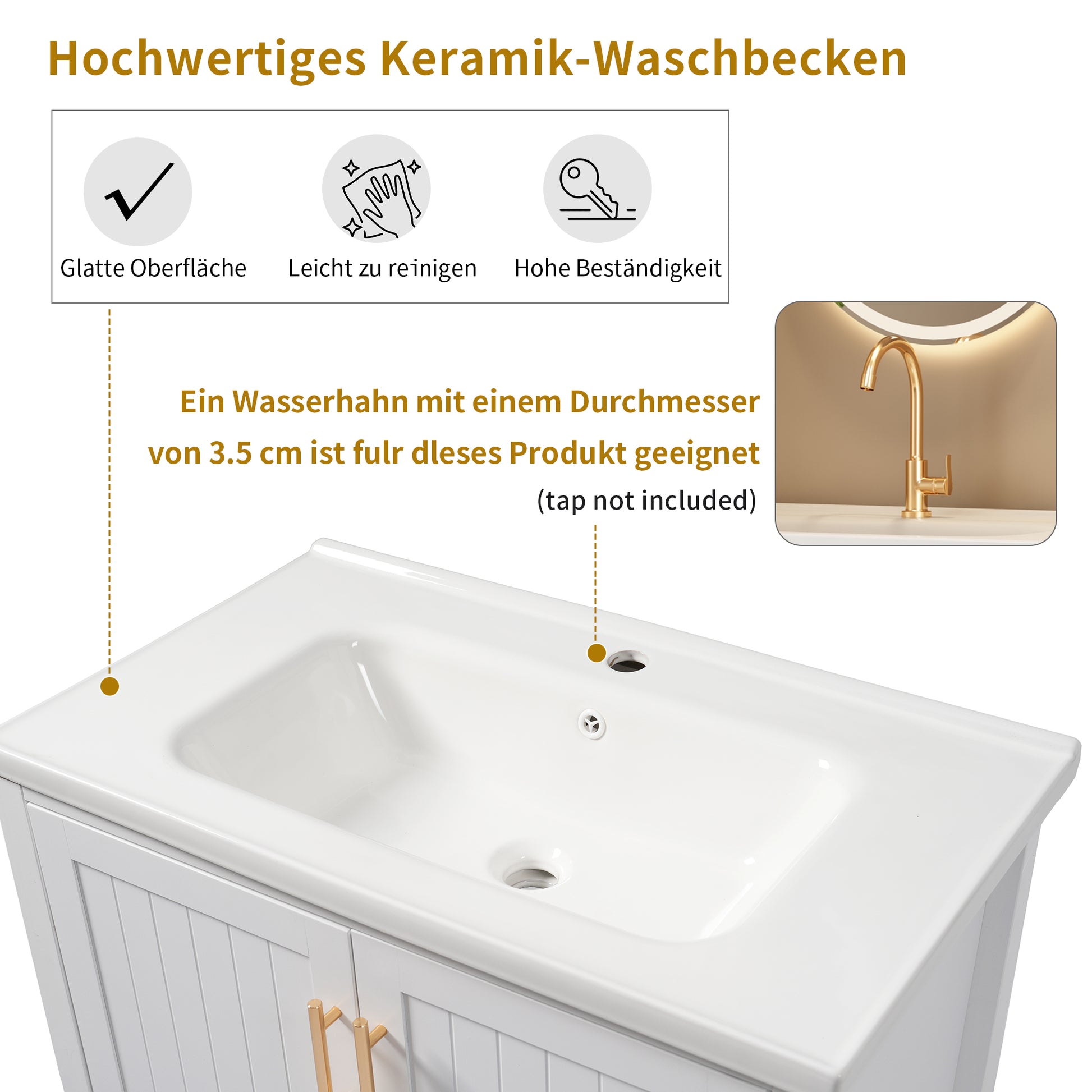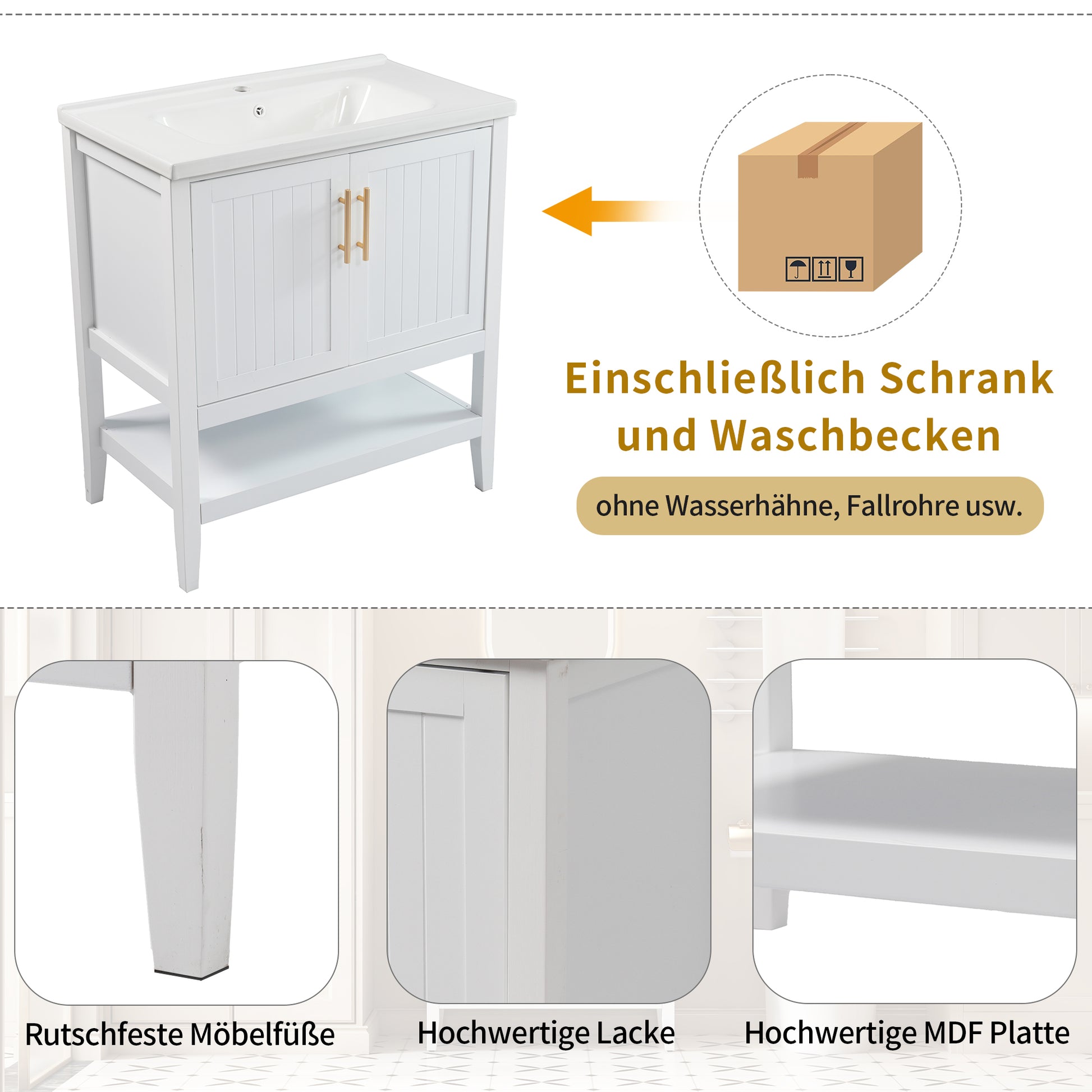 Note: The bathroom furniture set consists of 1 vanity unit and 1 sink; faucets are not included.