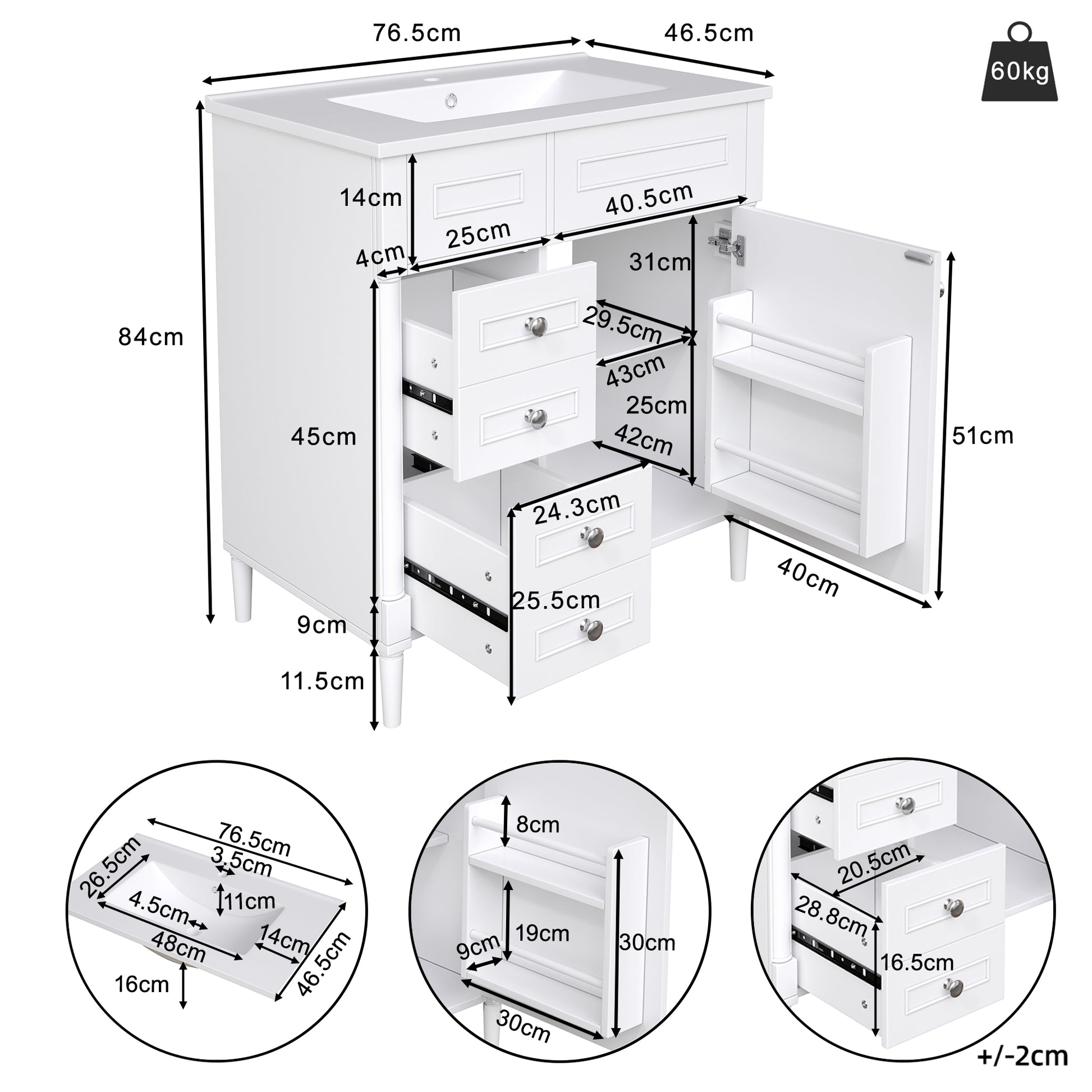 Product Size: 76.5 x 46.5 x 84 cm (L x W x H)