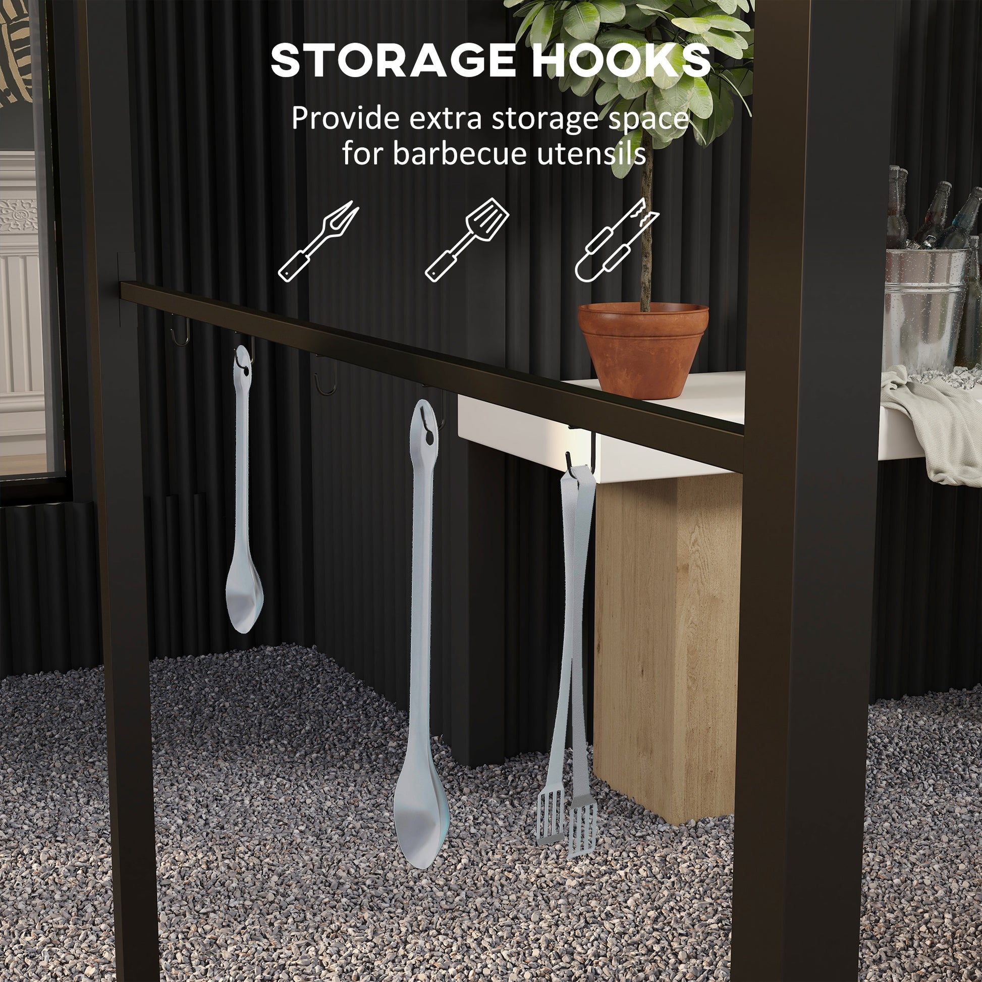 BBQ Grill Gazebo Tent 2.2 x 1.5m, Metal Frame Curved Canopy with 10 Hooks, Grey