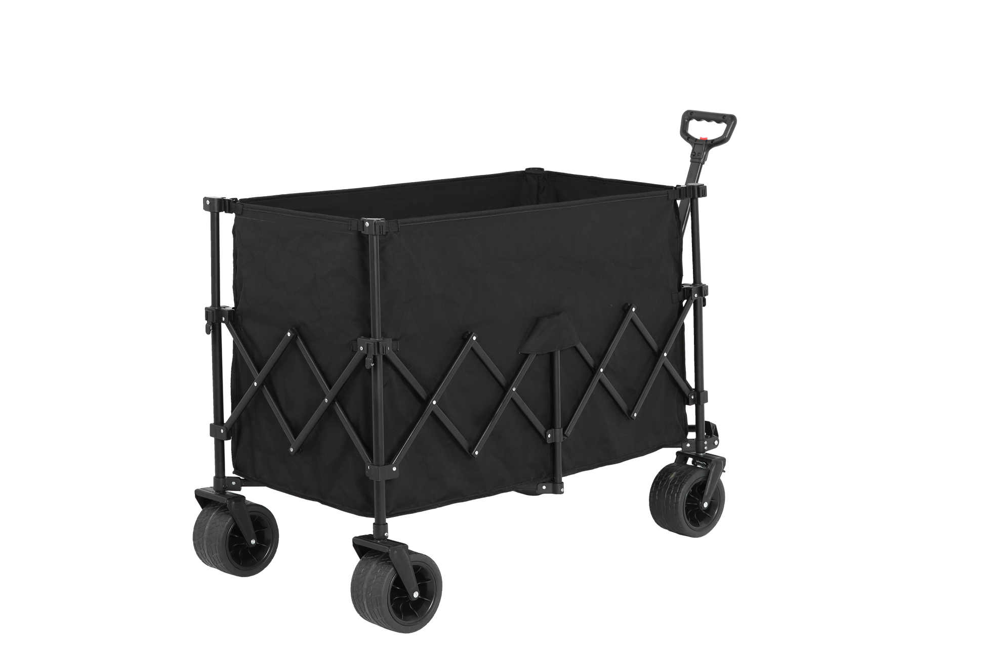 With a much deeper and enlarged storage space of 42.91" L x 20.87" W x 32.68" H. The roomy internal volume and surprise loading capacity more than 3times than other wagons overall. Two mesh cup holders beverages safe and sound.
