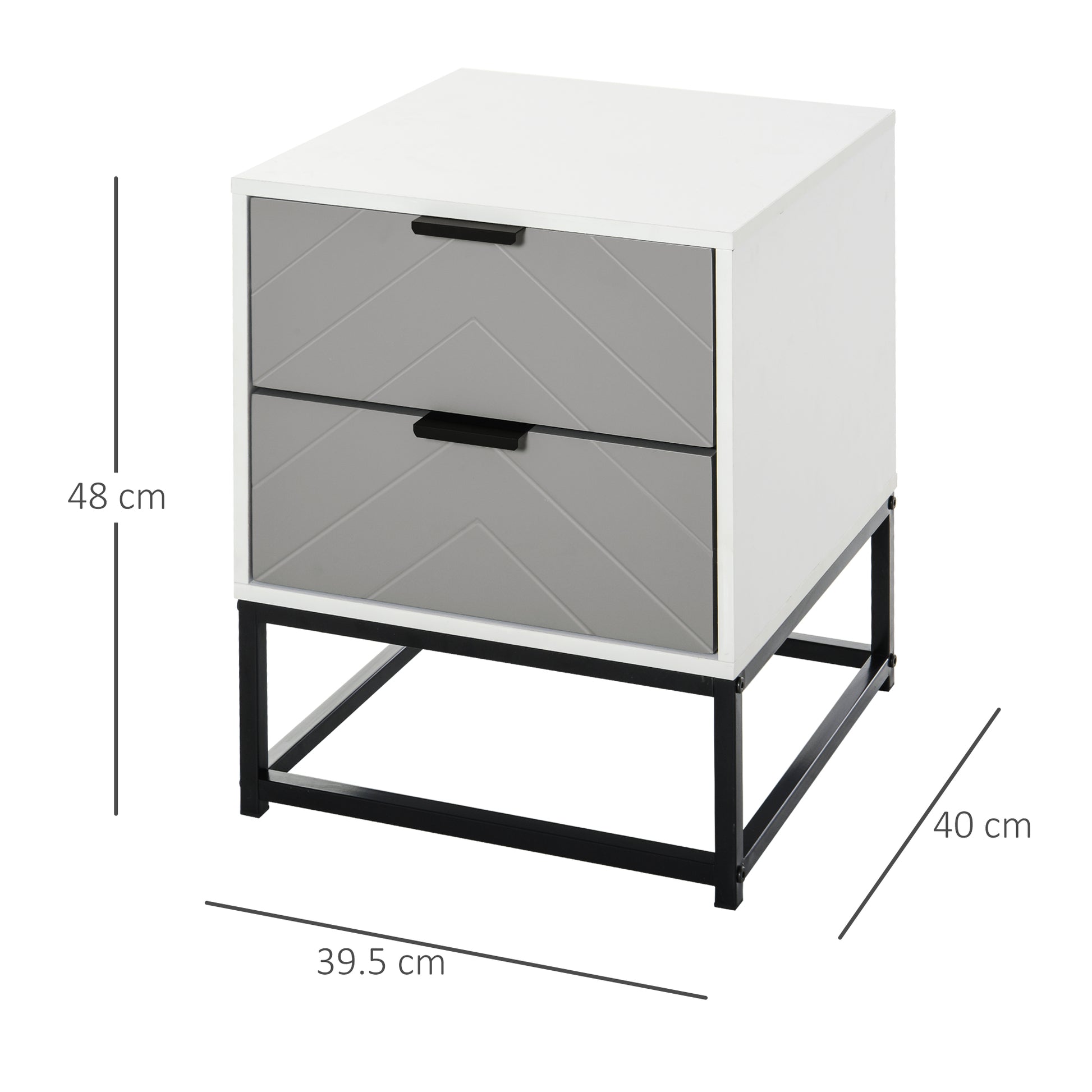 Bedside Cabinet, 2 Drawer Storage Nightstand with Metal Base, Grey/White MDF