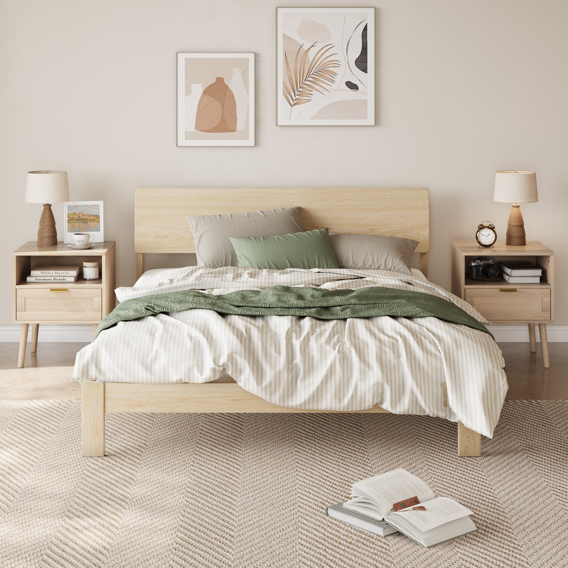 Easy to Clean and Maintain. The minimalist nightstand's drawer front is made of 100% natural rattan, making it easy to clean. Simply wipe it with a damp cloth or use a soft brush to remove dust or dirt. The low maintenance is ideal for busy individuals or families.