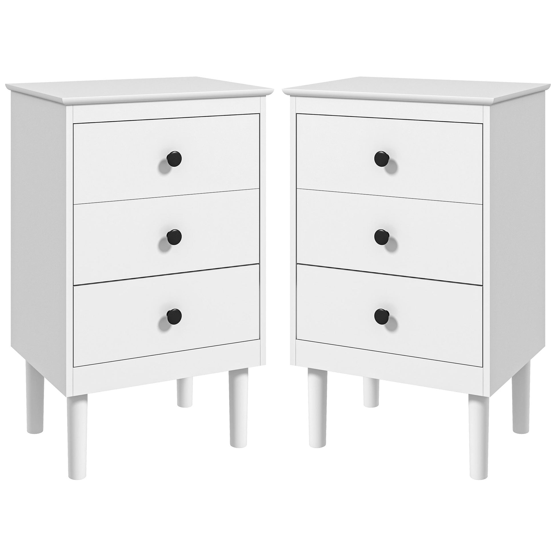 With a classic white design, both bedside tables are highly versatile and will look great in any style of home. Black handles add a subtle touch of contrast and make the drawers easy to open.