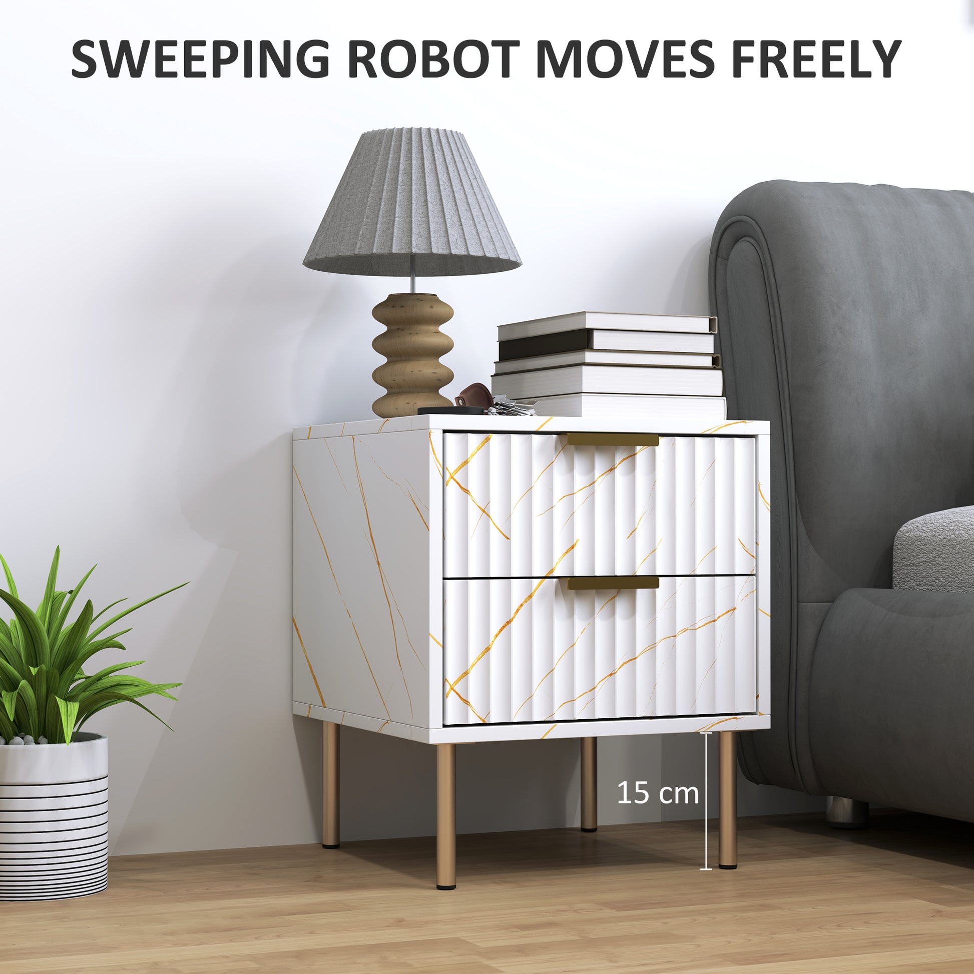 Steel legs: Strong support for this small bedside tables. Elevates the table to make it easy to clean underneath.