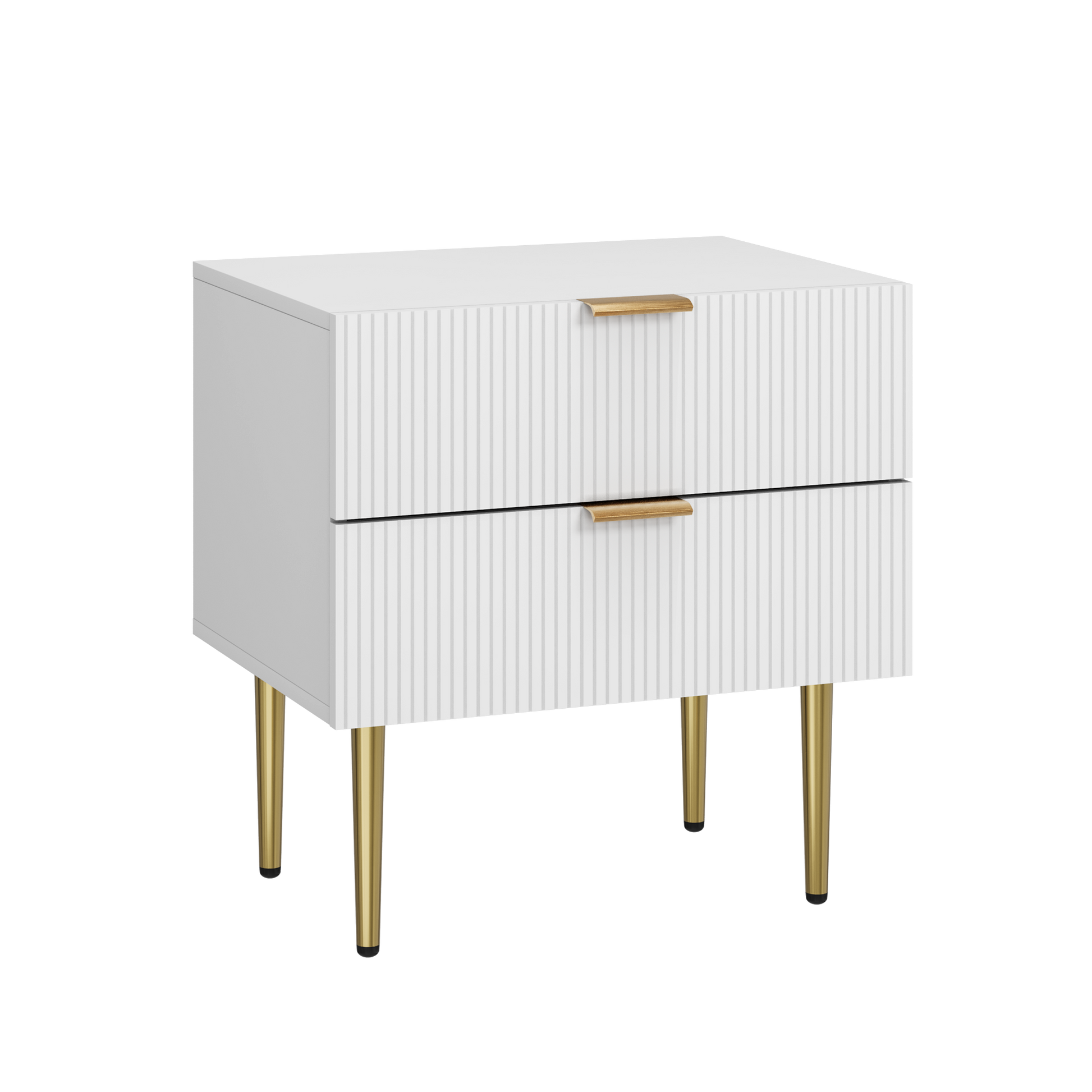 This nightstand features a vertical grooved design with unique patterns and exquisite metal handles, combining classic white with elegant gold. This piece exudes a modern feel in your bedroom. It can also be used as a side table or decorative table throughout the house, adding a touch of elegance.