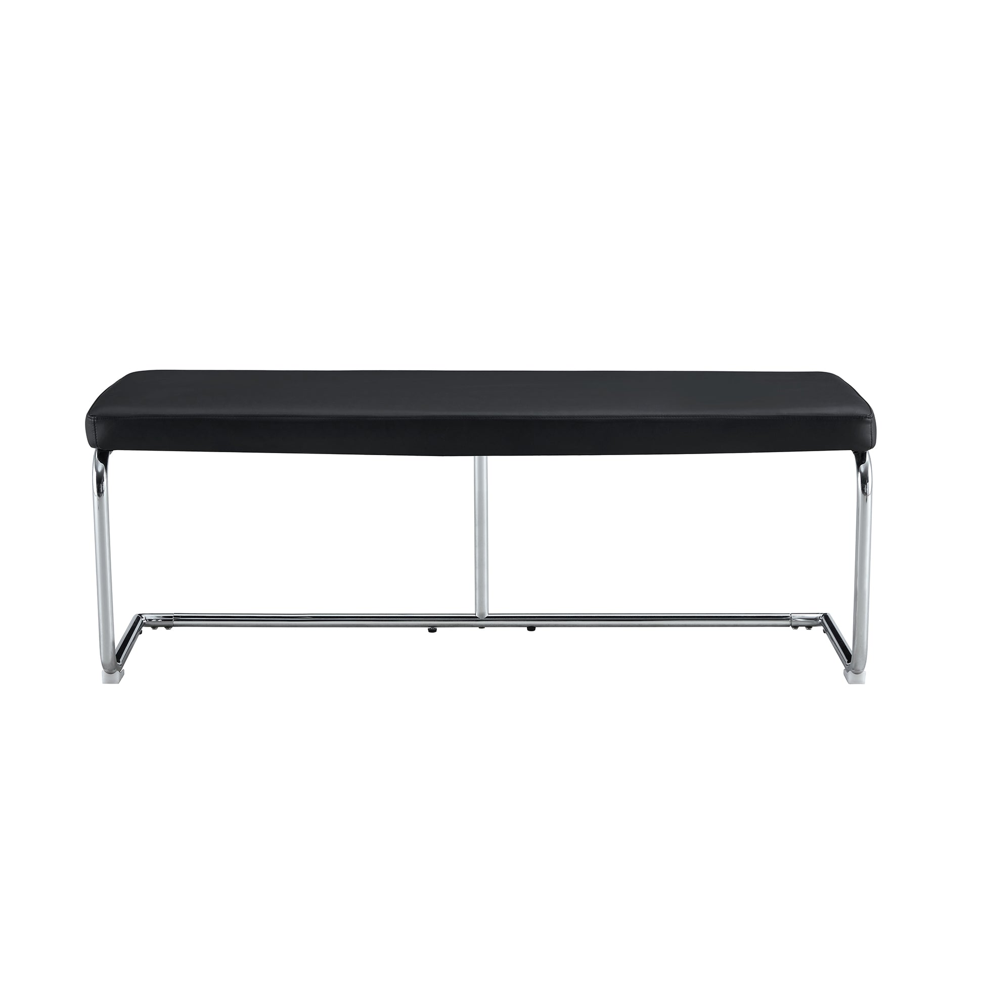 Bench 130cm Modern Dining Hallway Chrome Frame Leather Black
