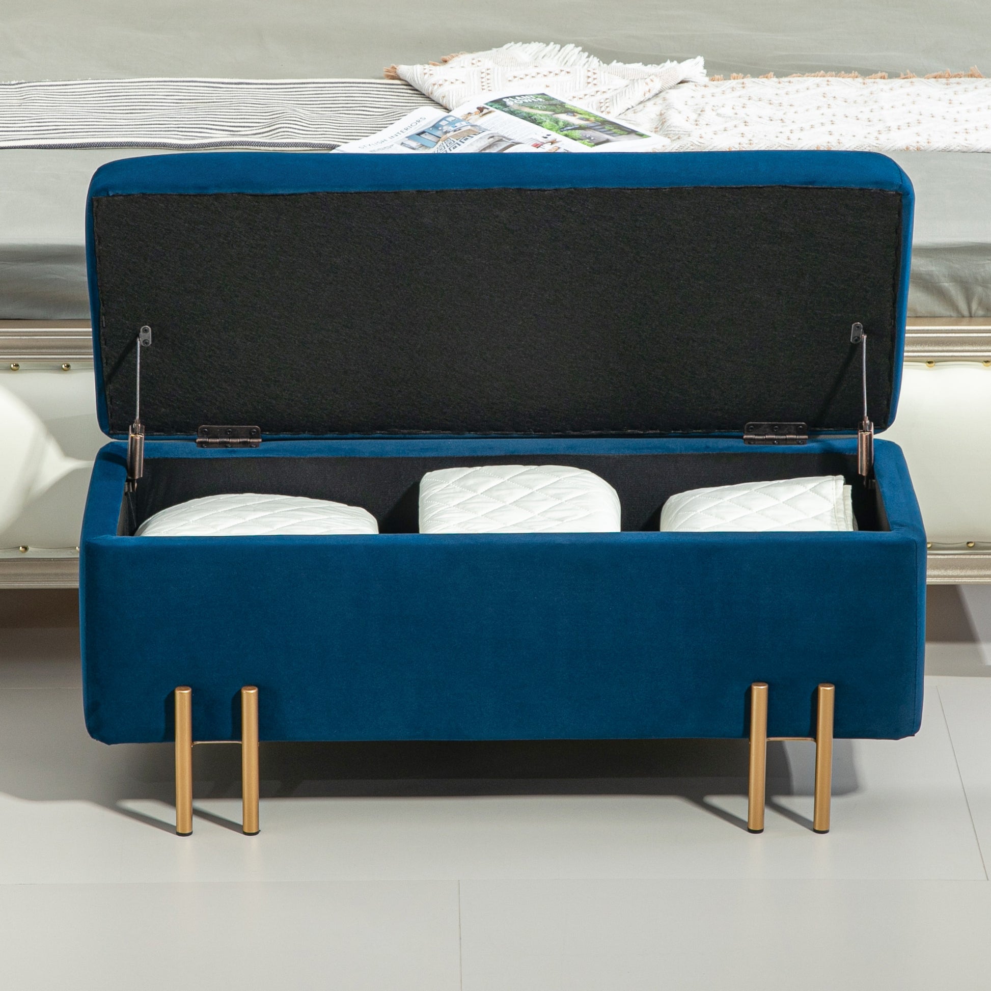 Bench, Upholstered Storage Chest, Dark Blue Fabric