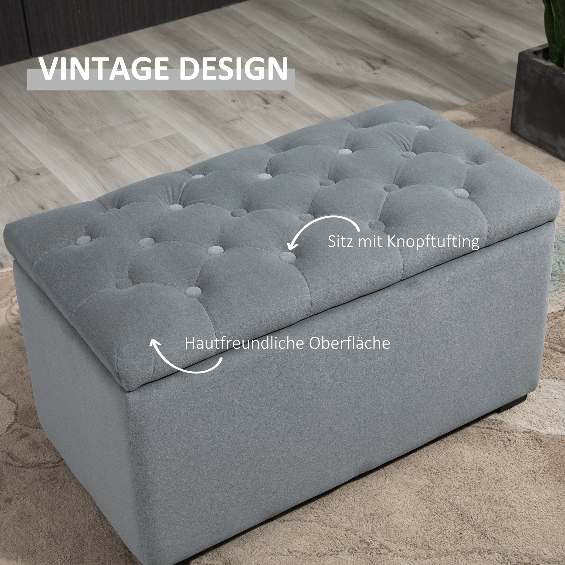 Space-saving: Under the hinged lid is a generous storage space, perfect for remote controls, magazines, toys, and books. The two smaller stools can be stored inside the bench to save space.