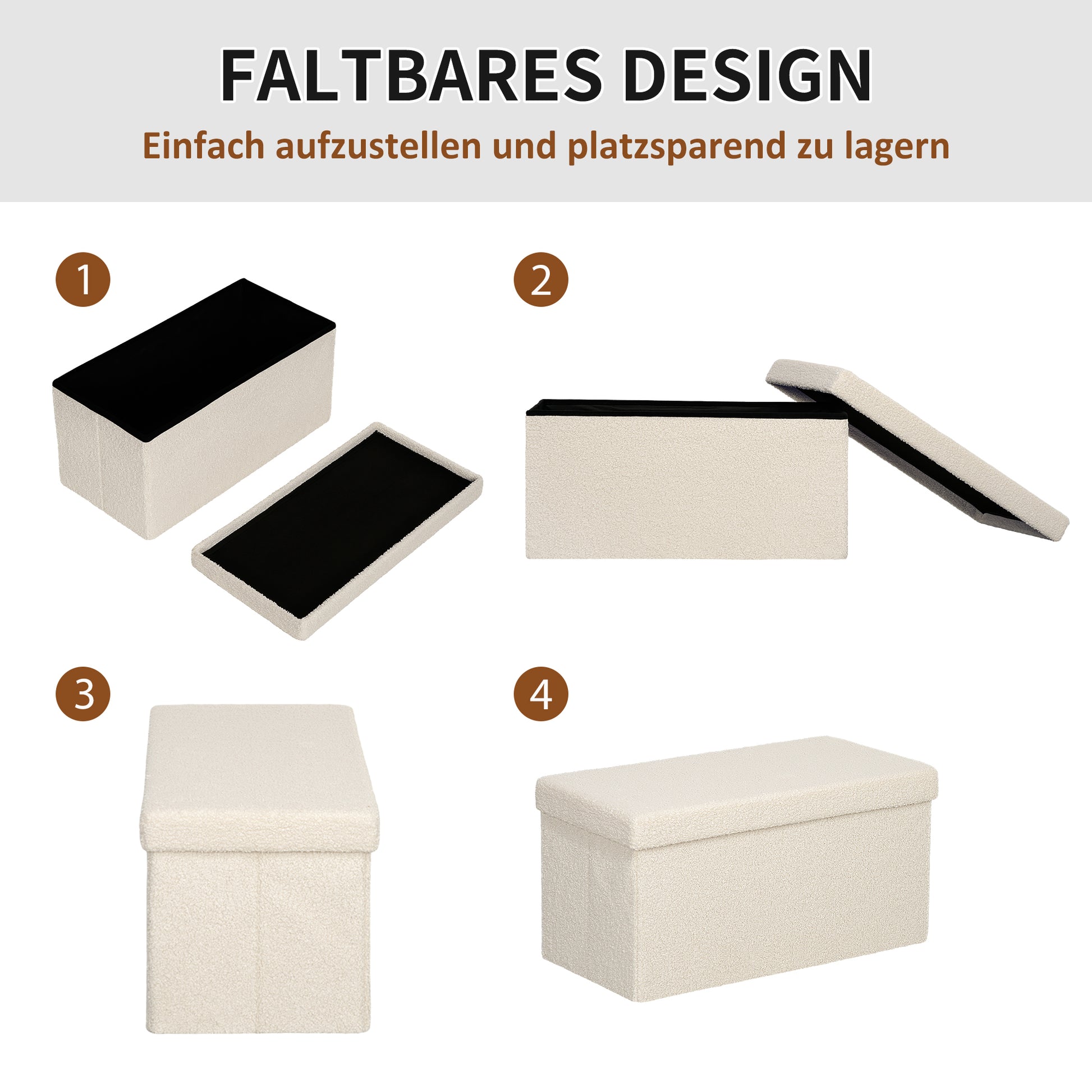 Bench with Storage, Foldable Upholstered Bed Chest, Velvet Cream White