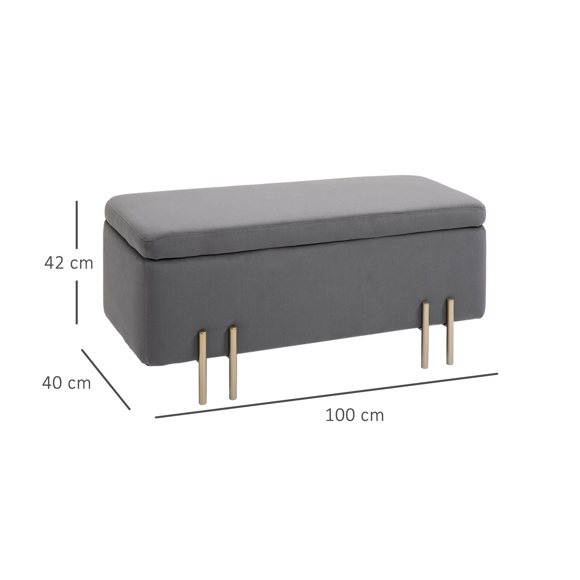 Classic design: The storage bench is made of high-quality soft-touch polyester and filled with 4 cm thick foam. The galvanized metal feet provide a sophisticated look.