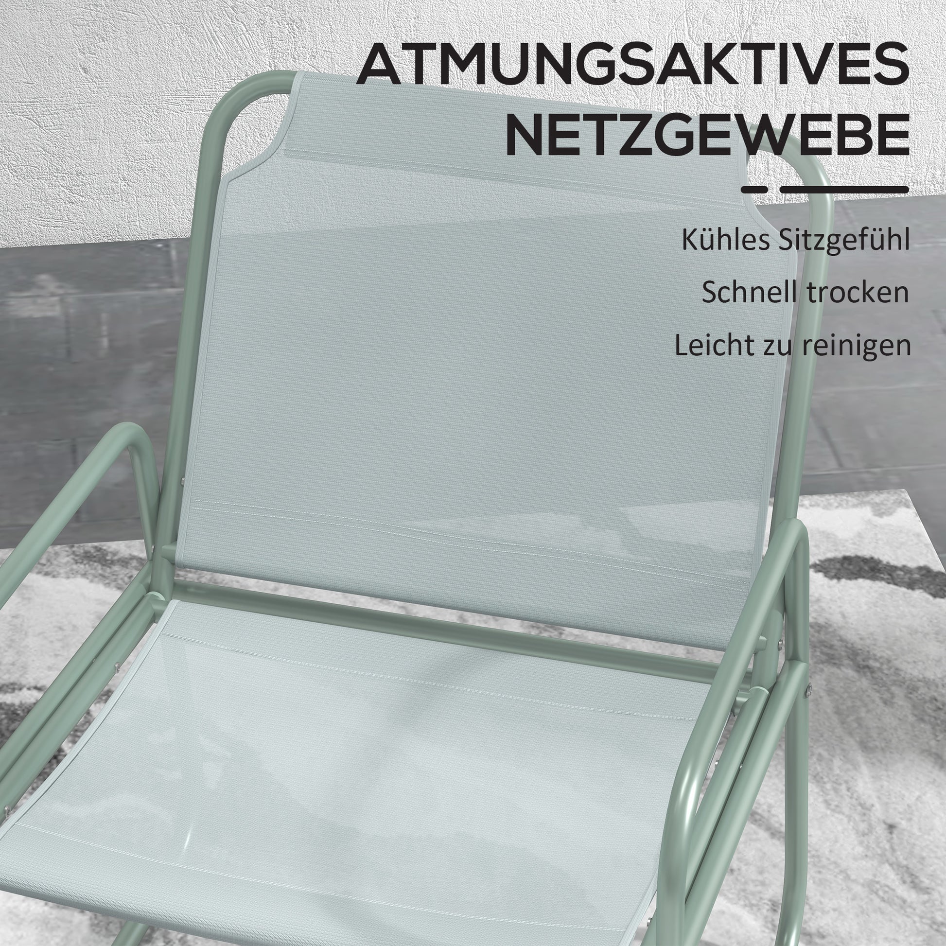 This premium garden furniture set features a powder-coated metal frame and breathable mesh fabric on the seat. This combination allows for quick drying and guarantees exceptional strength and durability. You can be sure that our set will stand the test of time and bring you lasting enjoyment.