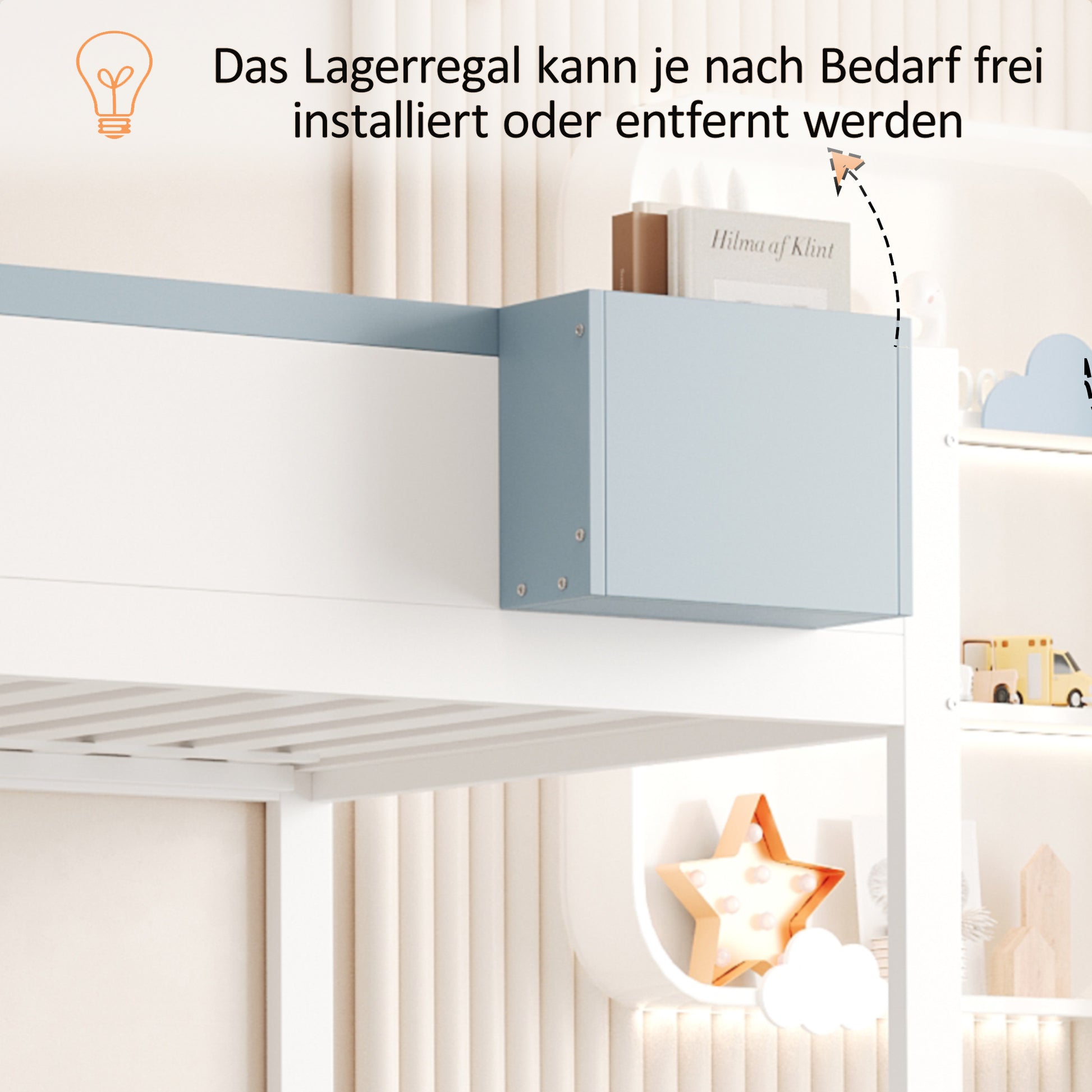 Bunk Bed for Children 90x200cm Double Bed Ladder Storage Drawers Rabbit/Carrot Motifs White + Blue