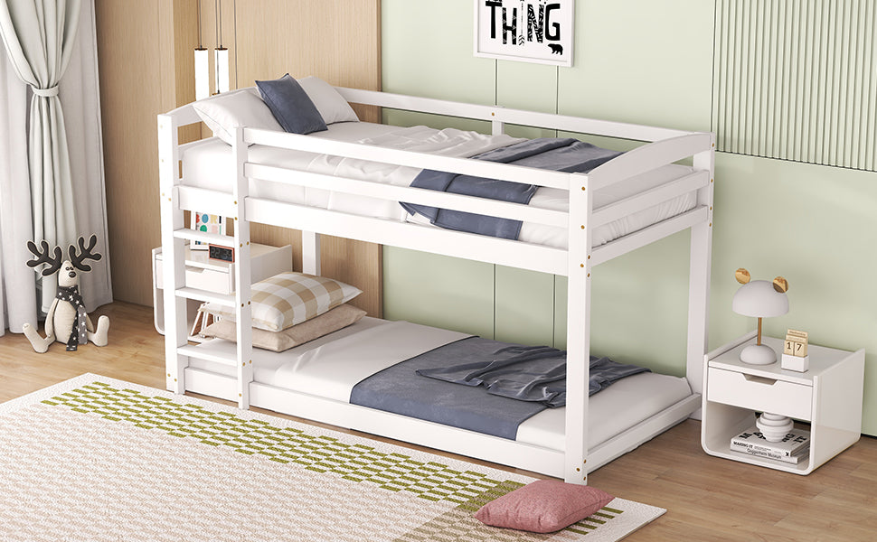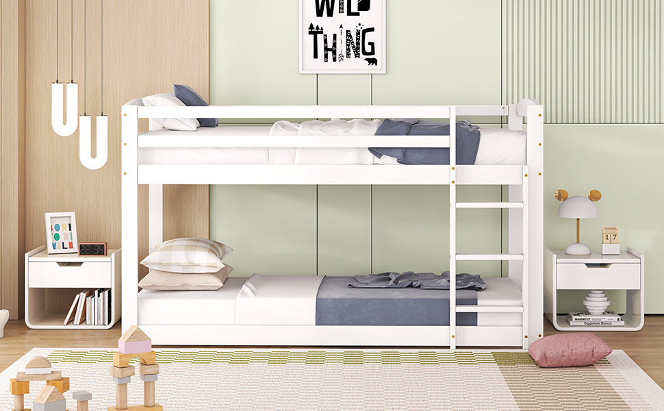 This bunk bed, featuring a solid pine frame, has a minimalist design and is easy to assemble. Its neutral white color is suitable for both boys and girls. This bed brings new life to your child's room by utilizing vertical space, providing more room for other furniture. The pine wood bed frame is sturdy and stable. For safety while sleeping, the upper bunk is surrounded by a guardrail.
