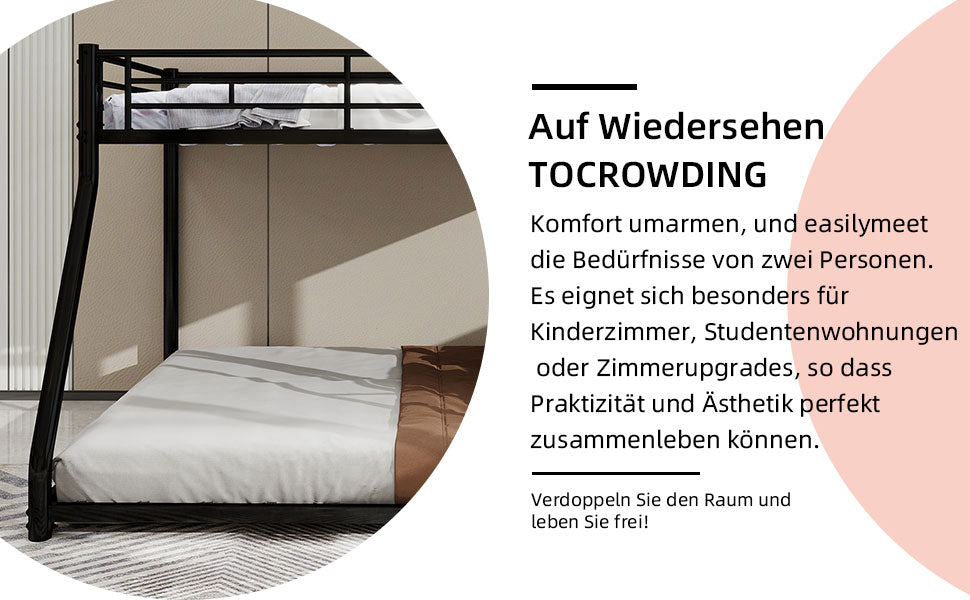Overall dimensions are 196.6 cm x 147.8 cm x 138 cm. The weight capacity is 200 kg for the upper bunk and 200 kg for the lower bunk, making our bunk beds suitable for various occasions.