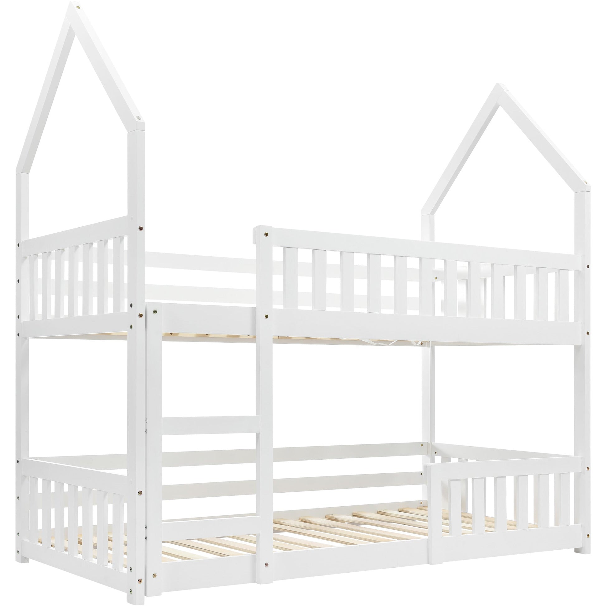 Bunk Bed, Twin Sleeper with Ladder & Gaming Castle Design, Solid Wood Frame (White)