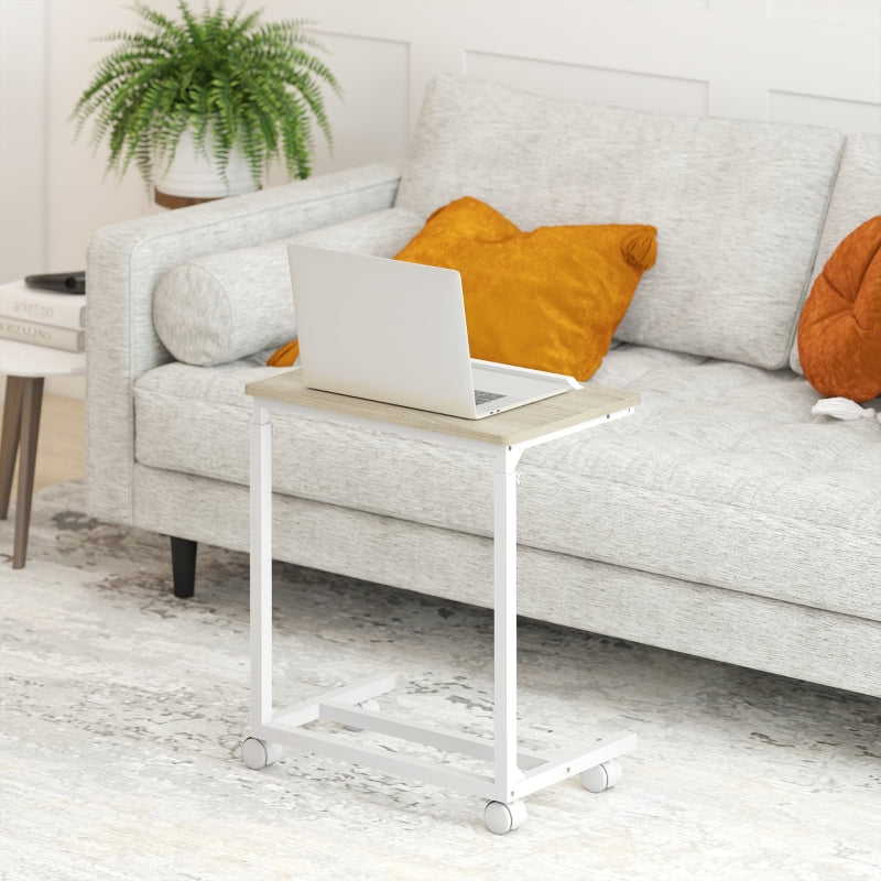 C-Shaped Sofa Side Table, Adjustable Height Tilting Desktop Mobile Laptop Desk, Oak and White