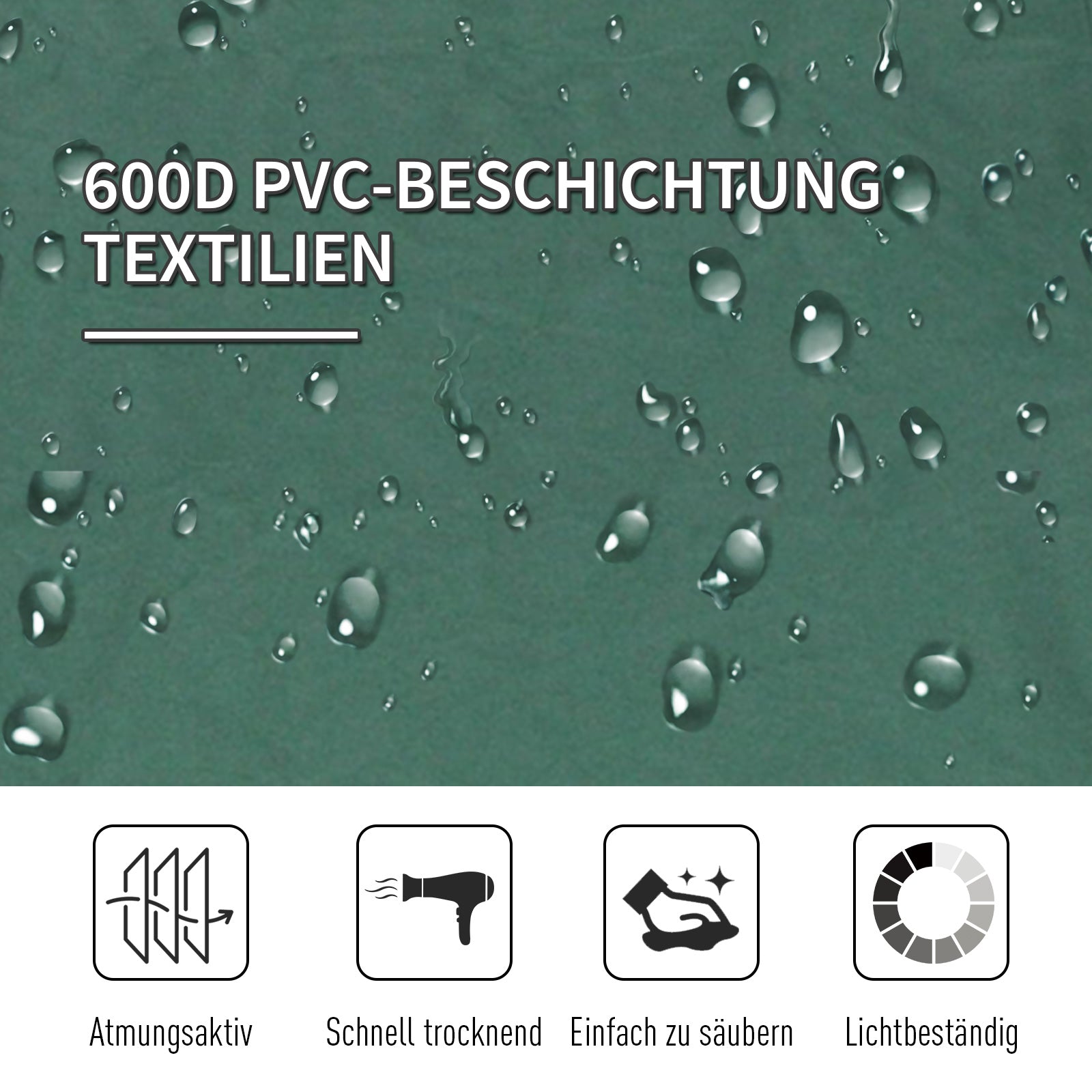 The camping bed is made of 600D Oxford fabric with a plastic coating, making it very robust, weather-resistant, and particularly wear-resistant. The durable fabric is held by a lightweight yet sturdy, powder-coated steel frame with stable feet that ensure a safe, stable, and level structure.