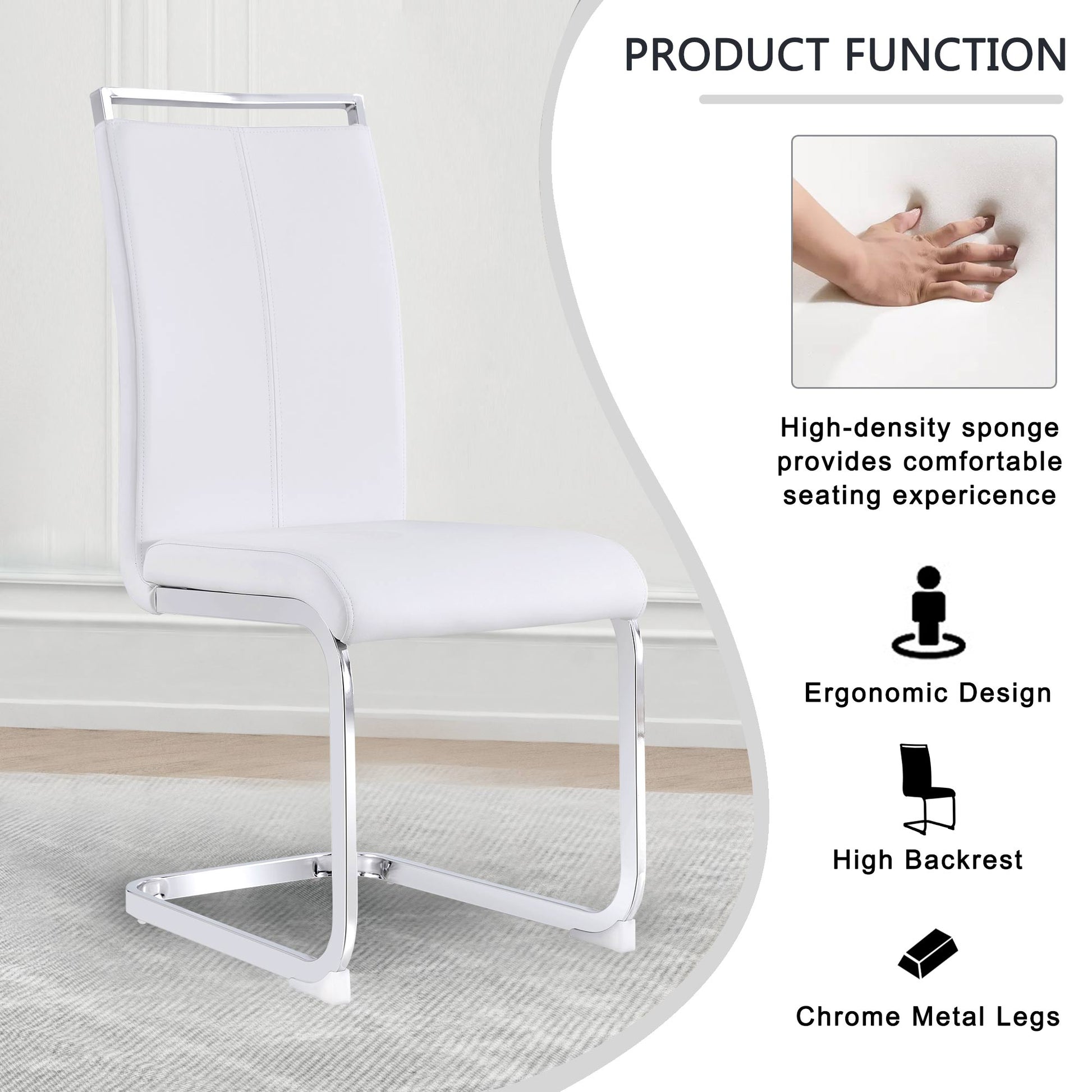 Cantilever Chair Set of 4 Chrome-Plated 120kg Faux Leather White