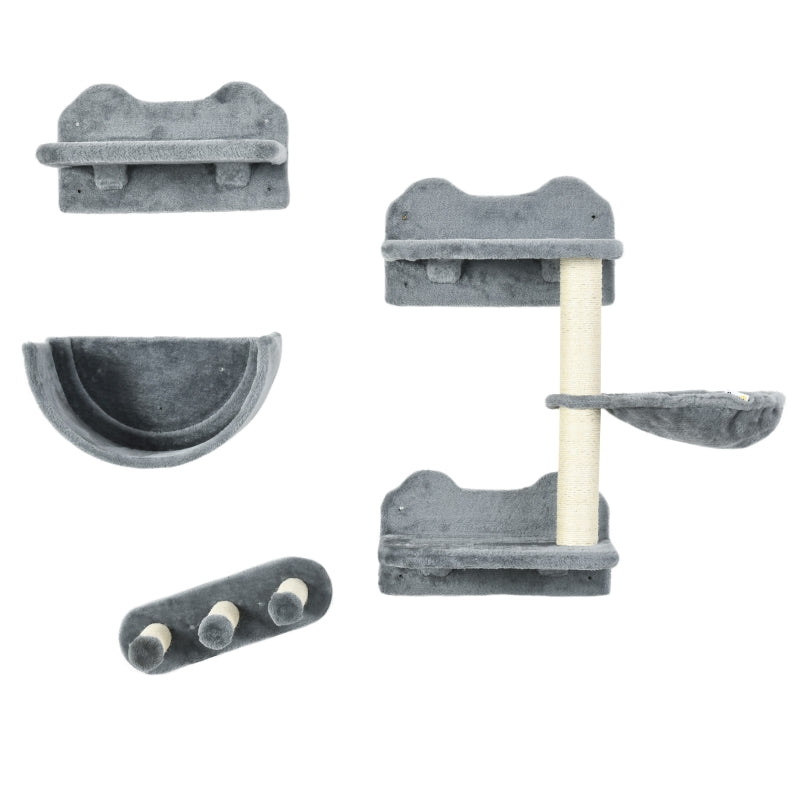 Cat Climbing Wall - 4 Pcs., Scratching Post, Cat Stairs, Hammock, Jumping Platform, Wood