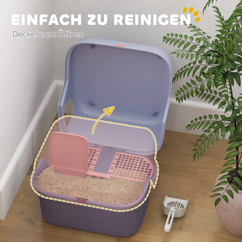 Cat Litter Box with Lid, Scoop, Easy Clean, Lockable, Purple