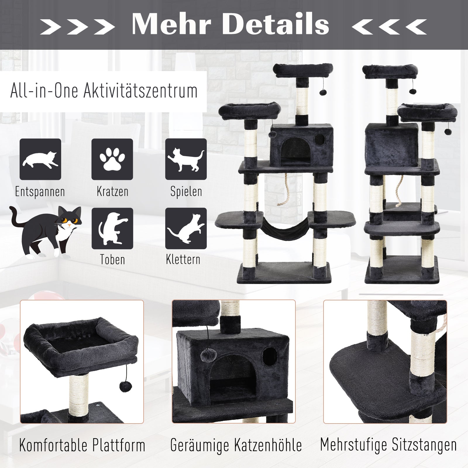 Cat Tree 144cm Wall Strap Hammock Cat House, Dark Grey